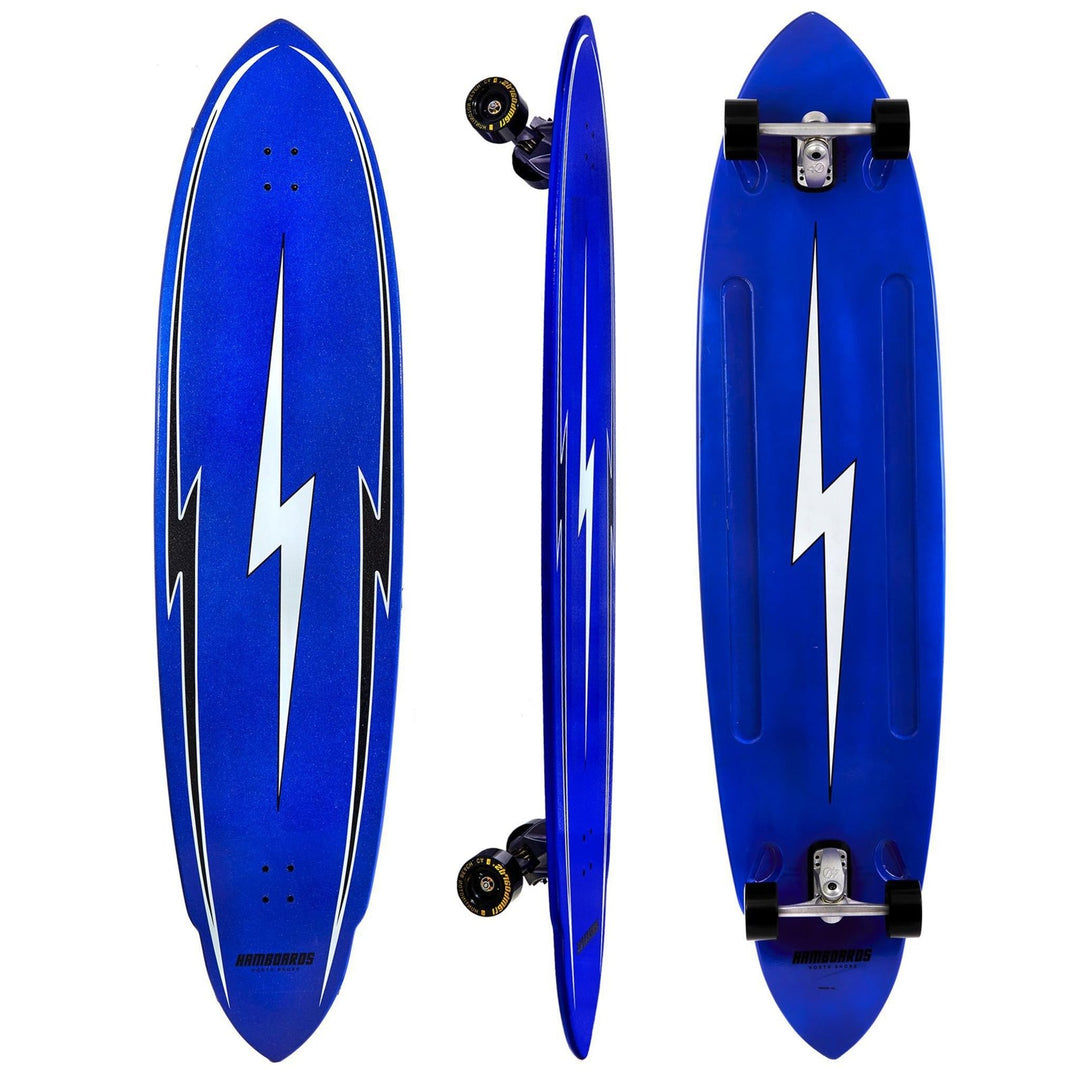 Surfskate riding is done on Back Foot Longboards which can have a comfortable combination of carving and pumping, provided the rider has proper technique. Most surfskates are some variety of back foot longboards and are generally easy to learn to pump. All traditional Hamboards can be converted to Back Foot Longboards with different front and rear baseplates.