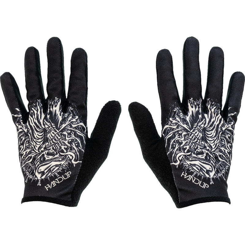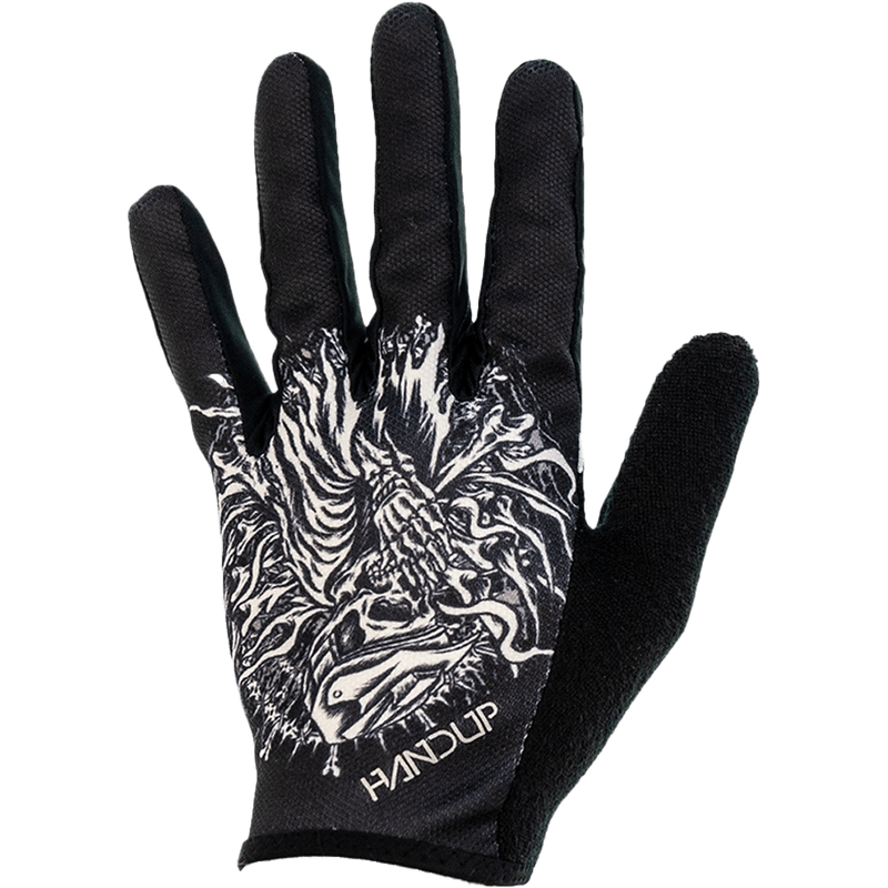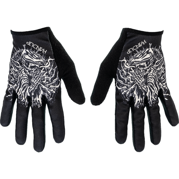 For those who treat every ride like a headbanging solo, the Death Metal design brings brutal style to the trail! Featuring an intense death metal band-inspired design—think jagged fonts, skulls, and a rider praying for loam.... (or safety)—these gloves are made for riders who crush trails as hard as a double bass drum blast.