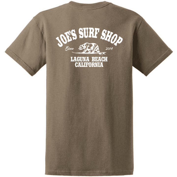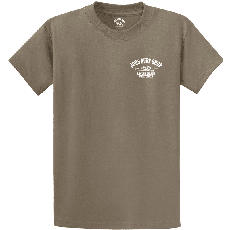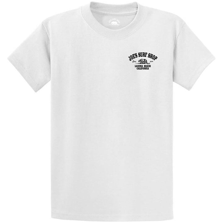 The Joe's California Surf Shirt is one of our most popular designs. Show your love for the old school surf culture with our California design. This design is simple yet says a lot. It encompasses surfing in Laguna Beach. Look cool in the Joe's California Surf Shirt. For those looking for surf shops and surf wear, here you go!