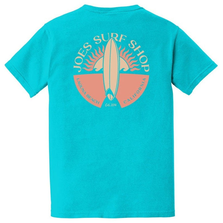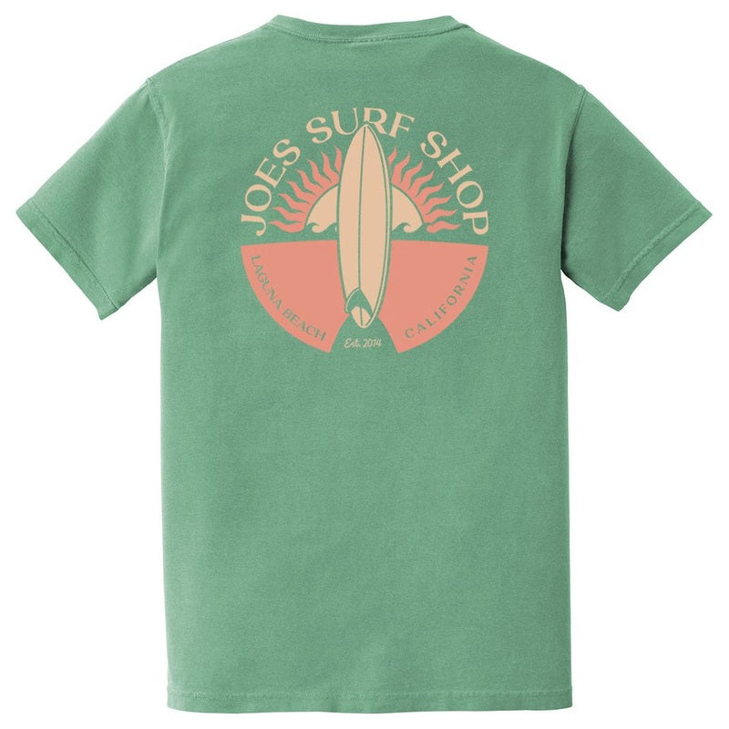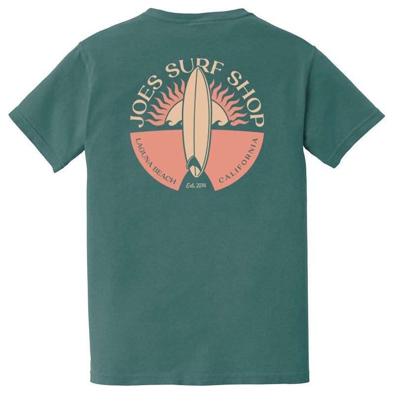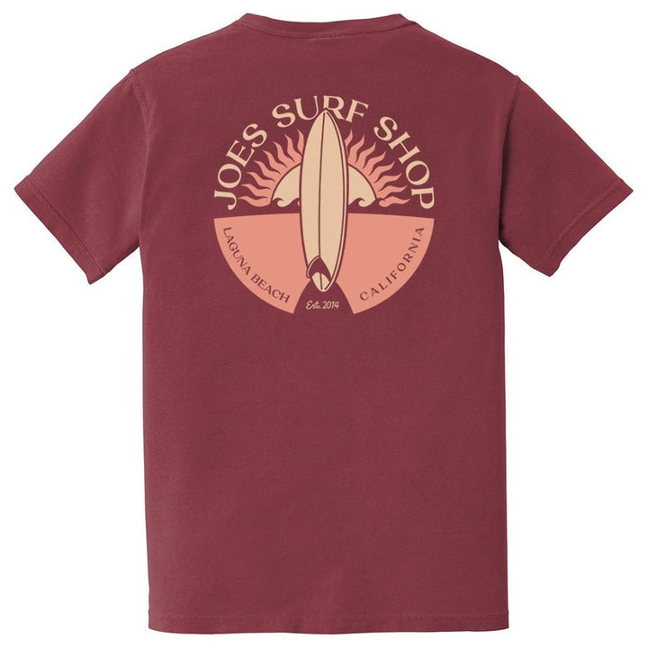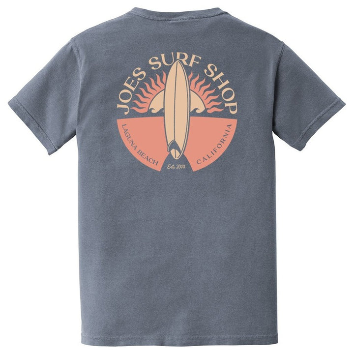 Joe's Sunset Scene Garment-Dyed Pocket Tee captures the laid-back vibe of beach life with its soft, high-quality cotton and relaxed fit. The unique garment-dyed process gives each tee a one-of-a-kind, sun-faded look. Featuring a stunning sunset scene graphic on the back and a handy chest pocket, it's perfect for surfers and beach lovers. Durable and stylish, this tee is a must-have for any surf shop collection. Get free shipping on all orders $75+