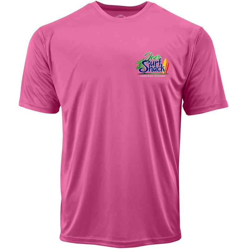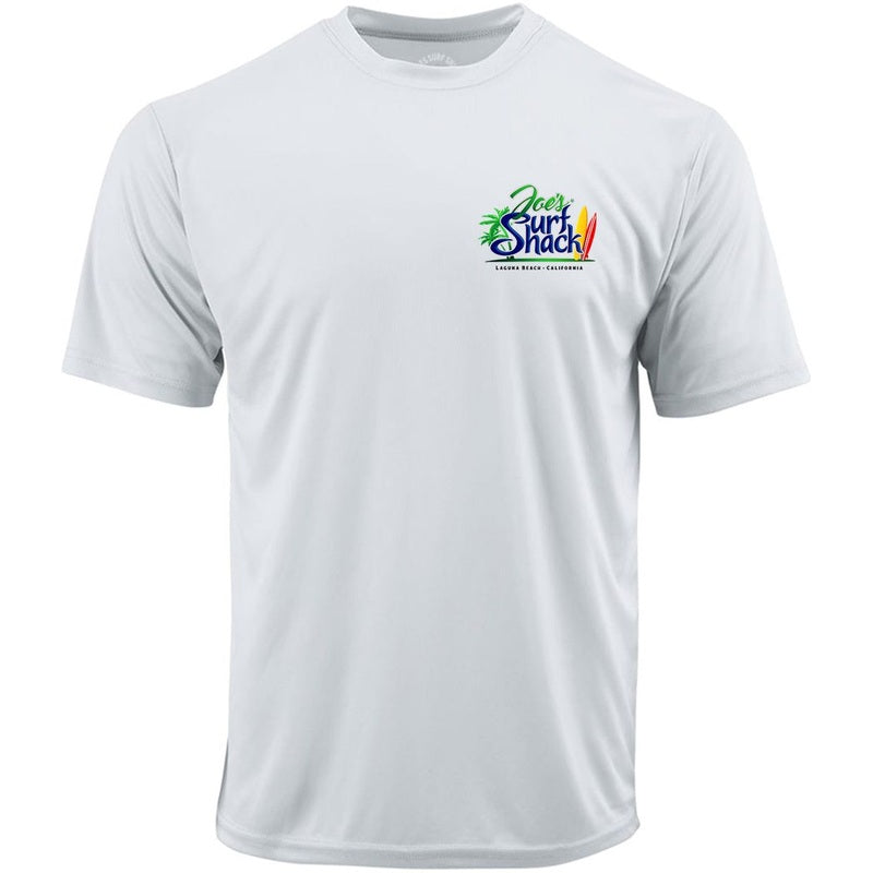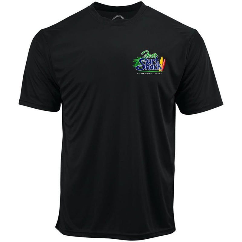 The Joe's Surf Shack Graphic Workout Tee is an essential addition to your workout clothing collection. This moisture wicking tee is made of the softest polyester that gives you an ultra comfortable feel. Our best selling Fins Up logo was designed in Laguna Beach, CA.