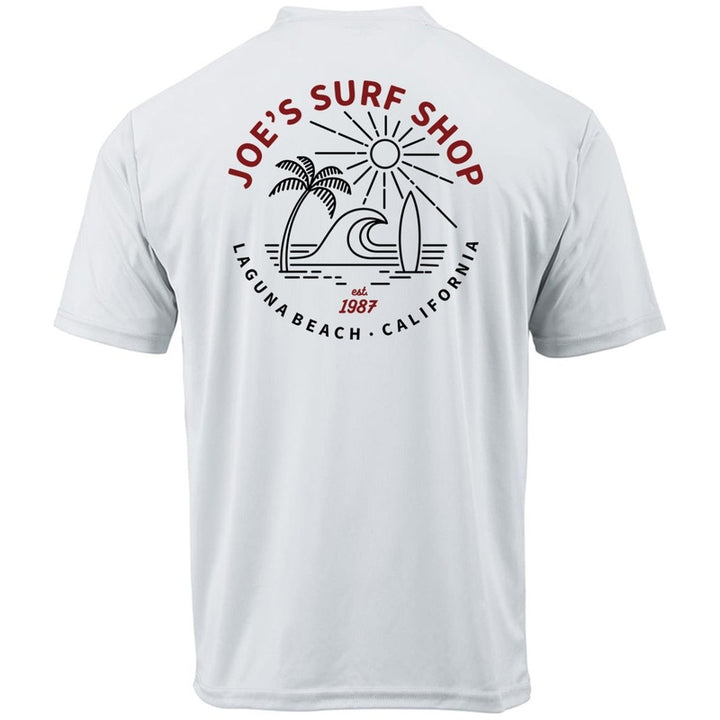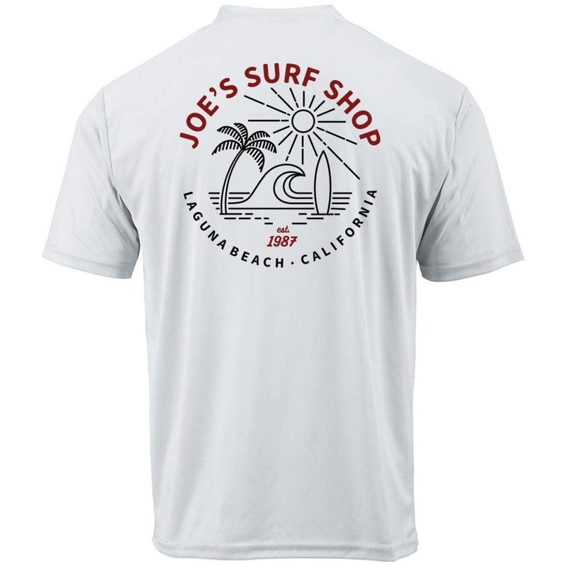The Joe's Surf Shop Beach Life Graphic Workout Tee is unique in its blend of both style and comfort. Rep this classic Californian logo at the gym, at the beach, on a hike, or anywhere else that feels right. This moisture wicking graphic tee is extremely comfortable and very durable.
