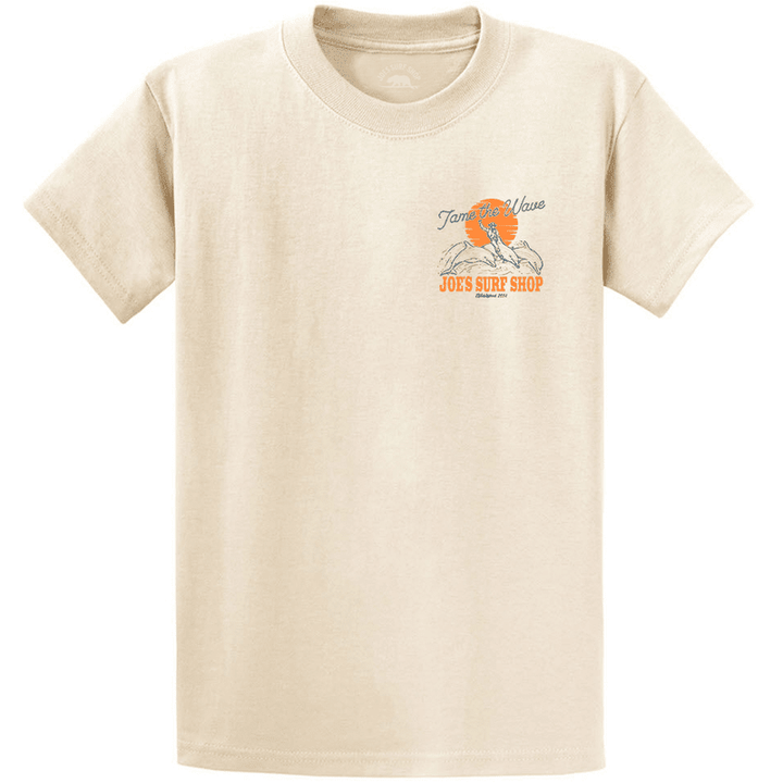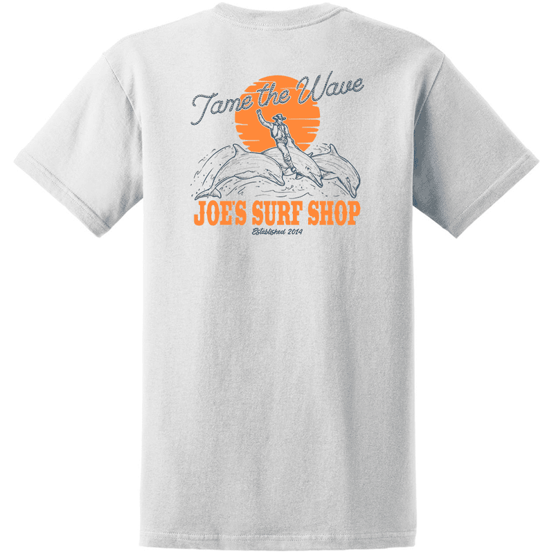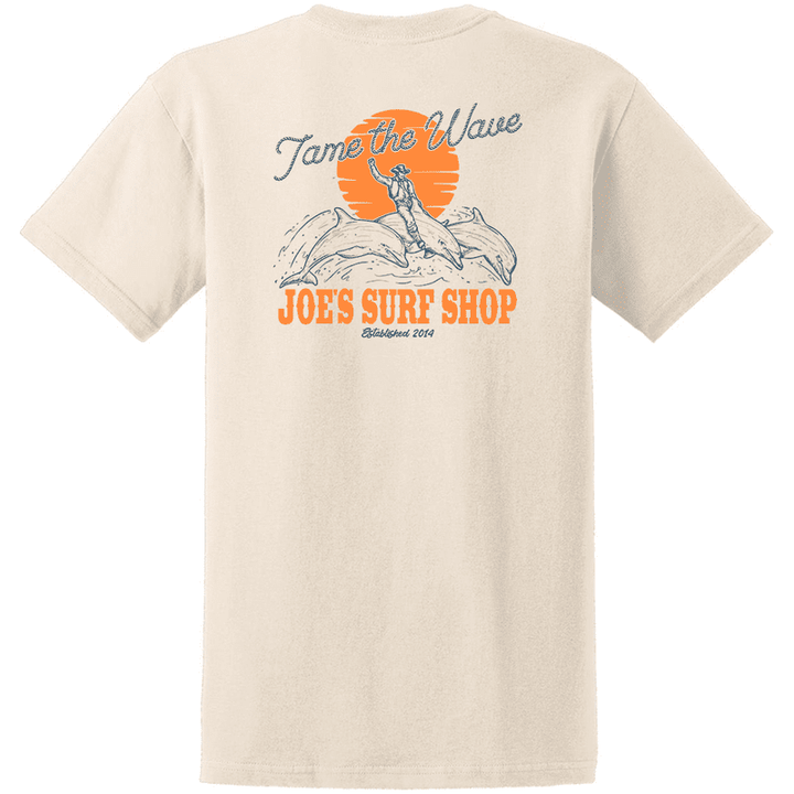Yee haw cowboy! We are thrilled to drop our first ever western shirt! Western wear has been super popular recently so we decided to combine the beach and the Wild West to create the Joe's Surf Shop Diving Dolphin Western Shirt! This graphic features a cowboy riding dolphins across the water! Heck he might even be a rodeo surfer!