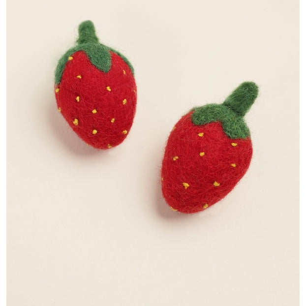 A perfect spring time sweet treat. Made of 100% WOOL, this densely felted strawberry acts as a natural floss that helps clean your kitties teeth. Our KITTY STRAWBERRIES are perfect for batting, chasing and hiding.