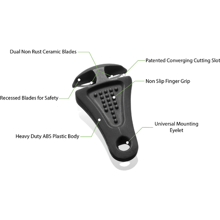 The Line Cutterz Zipper Pull is finally here! The recessed blade is mounted in a redesigned cutting slot for even closer cuts. The heavy-duty ABS plastic body with textured non-slip grip provides long-lasting dependable use. It can cut braided line, monofilament, and fluorocarbon - right from your zipper.