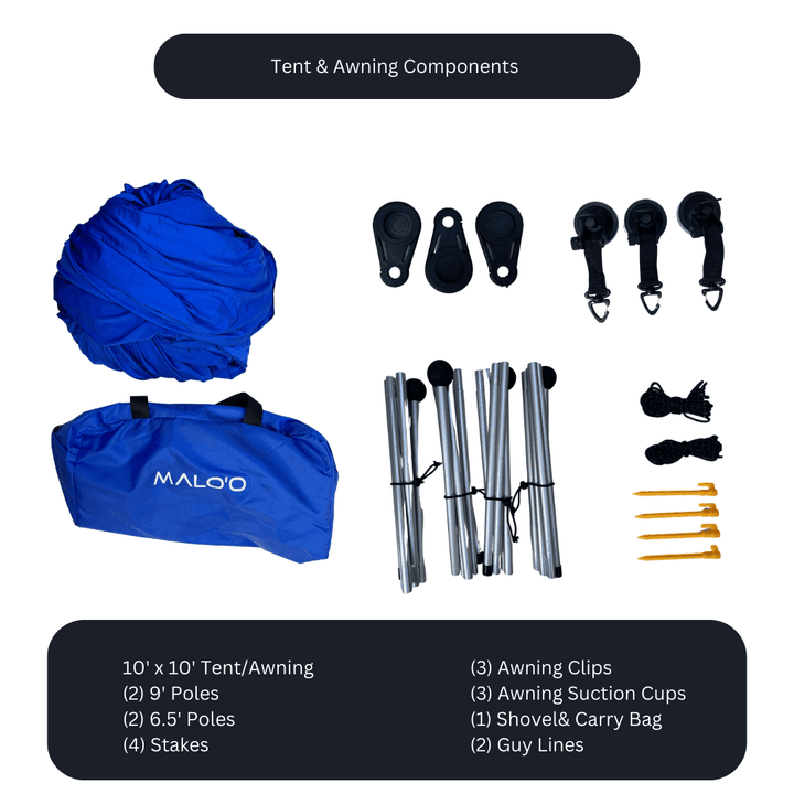 Whether you're looking for a comfortable spot to read a book, a shady respite from the sun, or a safe place to keep your belongings, our 10'x10' Beach Tent & Vehicle Awning has got you covered. Order now and enjoy your next adventure with peace of mind and comfort!