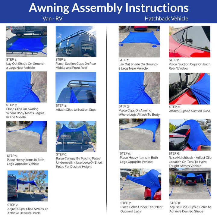 But why only use it at the beach? The Malo'o Tent is also capable of being an awning for your vehicle. It will work on vans, SUVs, and hatchbacks. We've included clips and suction cups so you can use your tent & awning at campgrounds, parks, and events.