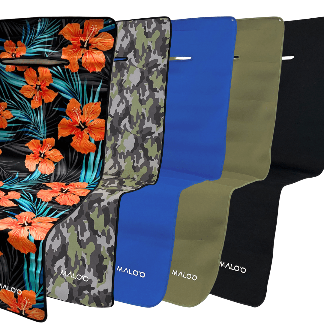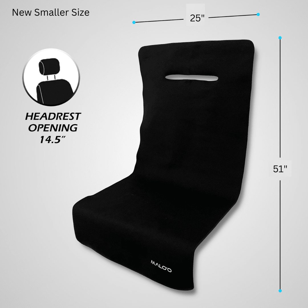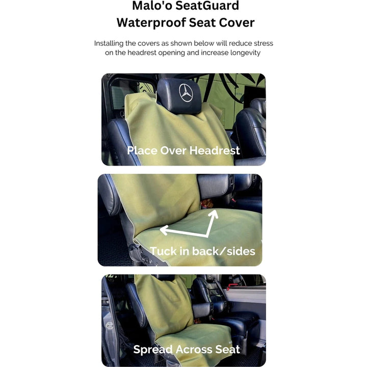 The Malo’o SeatGuard™ Waterproof Waxproof Car Seat Cover is the largest single-seat cover available on the market and can fit all types of vehicles, including large RV captain chairs, van, and truck seats. To use, simply slide the cover over the headrest and tuck in the edges for a perfect cover. Your seats will be protected from the sun, mud, dirt, and water.