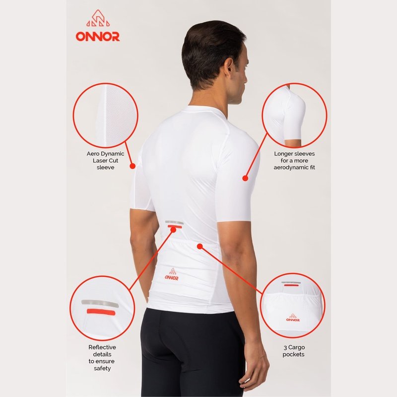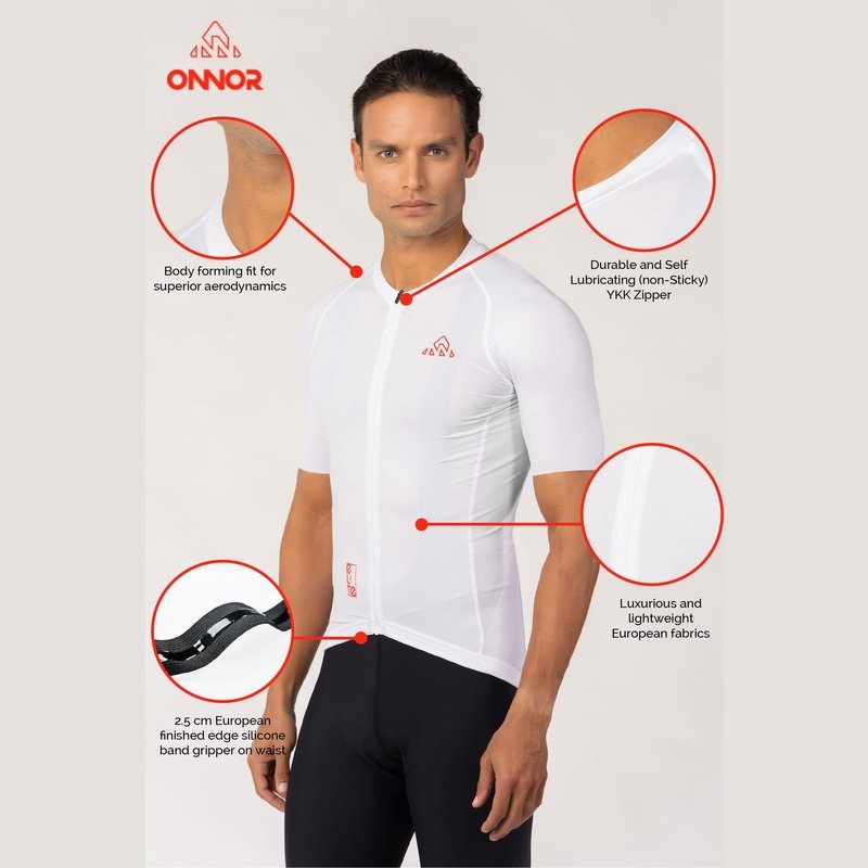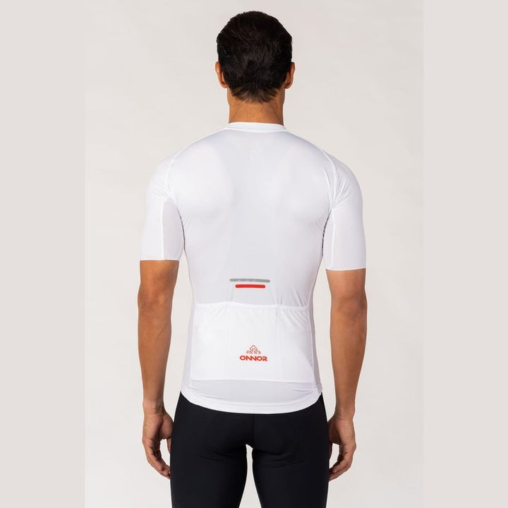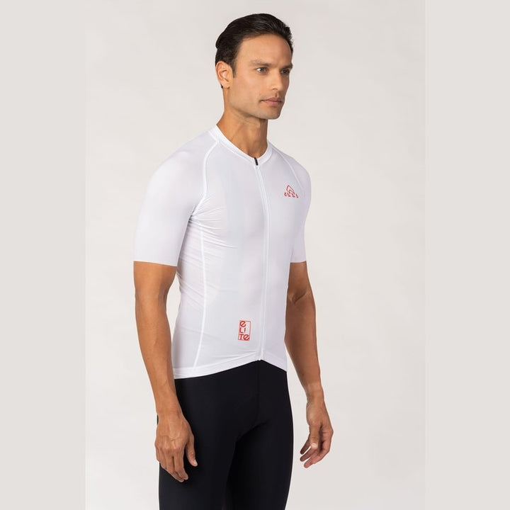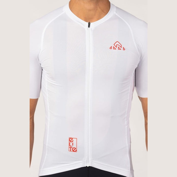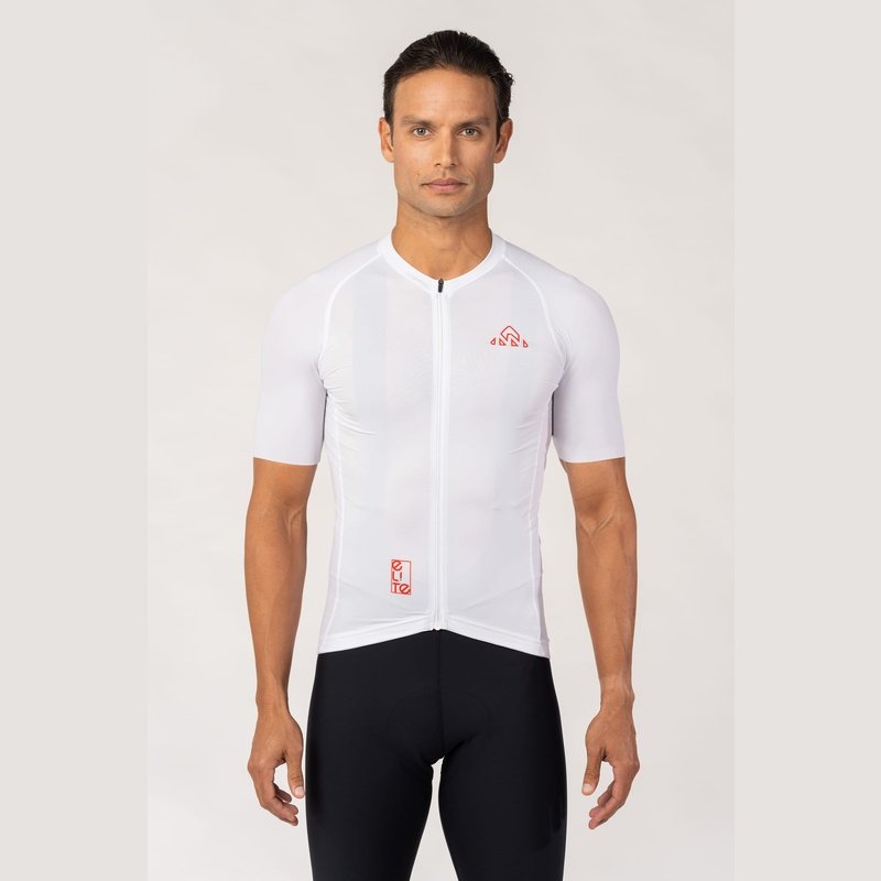Men's Bike Jersey - White Cycling Jersey are the perfect choice for when you need maximum comfort and performance. Our Elite Men's Cycling Jerseys are intended for those who want a touch of modern design and comfort. The Elite Jersey features an updated collar, rear pocket layout with a fourth waterproof zip pocket, and surge-seam stitching for a clean finish. It is built with soft and comfortable performance fabrics.