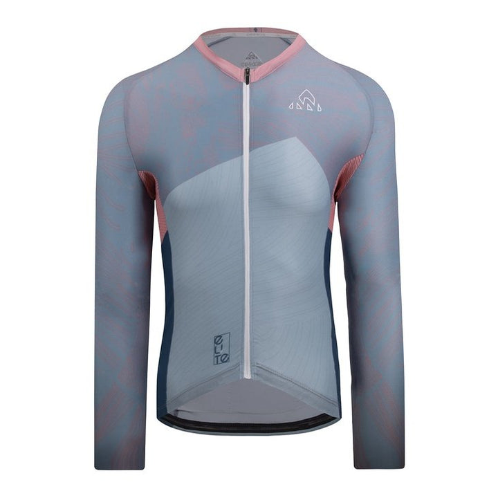 Men's Elite Cycling Jersey Long Sleeve - Light grey / Light Blue