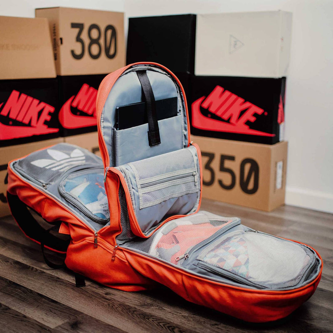 Our Orange Leather Luxury Carry-On Backpack is the latest in our travel bag collection. It has taken the world by storm, carrying up to five pairs of shoes, clothes, laptops, travel essentials, and much more! The best part is that our bags fit neatly in the overhead bin of commercial airlines.