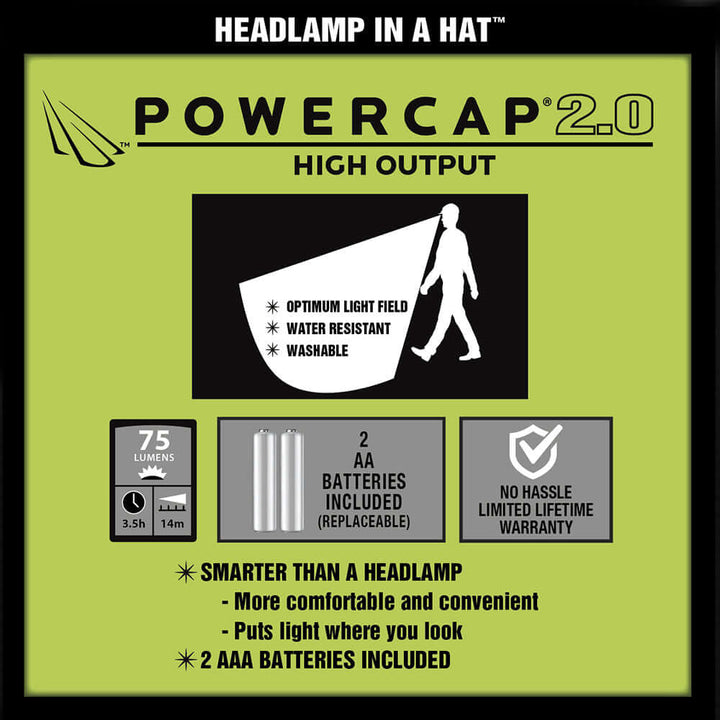 • POWERCAP’s New Lighting Technology – 2.0 Series Headlamp Lighting – 50% Brighter LED!