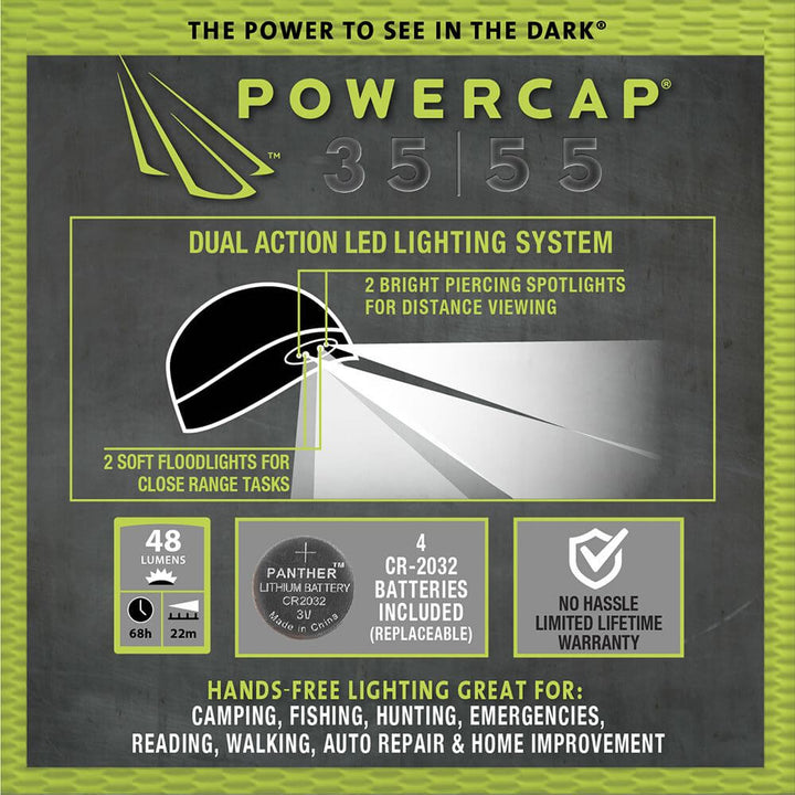 - Versatility: Some people rely on the POWERCAP® for work. Others prefer it for their recreational activities. Plenty keep one in their vehicles for those spontaneous nighttime adventures. If you can use a hat, and you can use a light, you’ll find that your POWERCAP® always delivers.