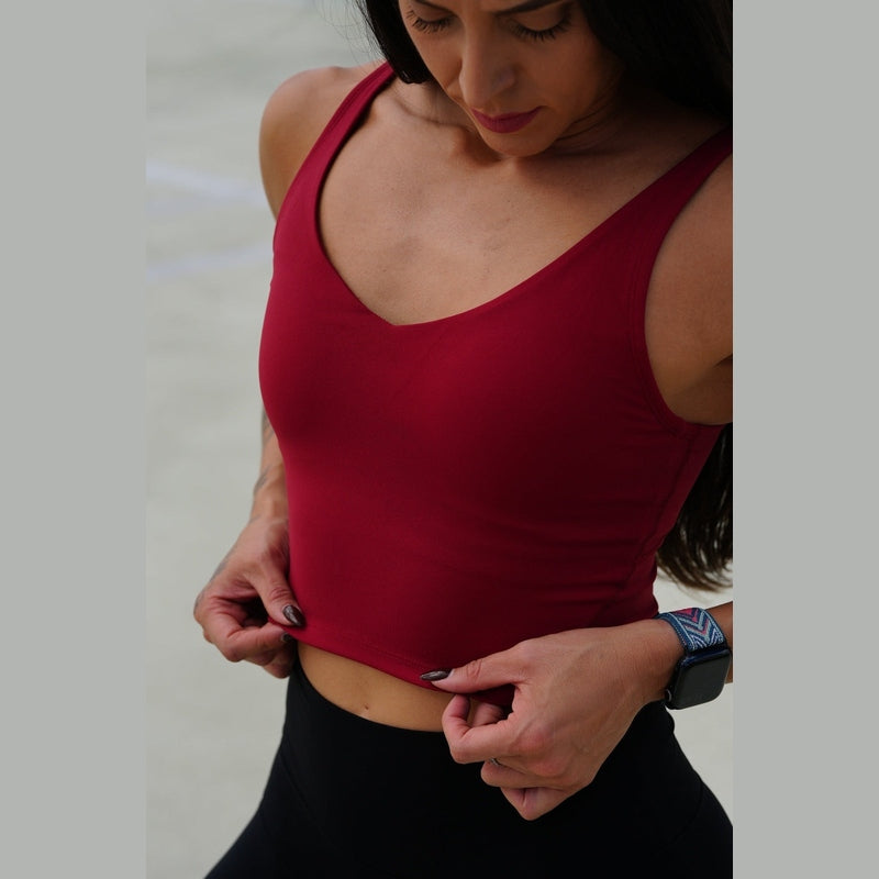Willa has a built-in bra with removable inserts and provides medium support without being uncomfortably restrictive or tight on the lats, rib cage, or traps. It has a beautifully comfortable naked feeling, all while providing you the support you need for tough workouts.