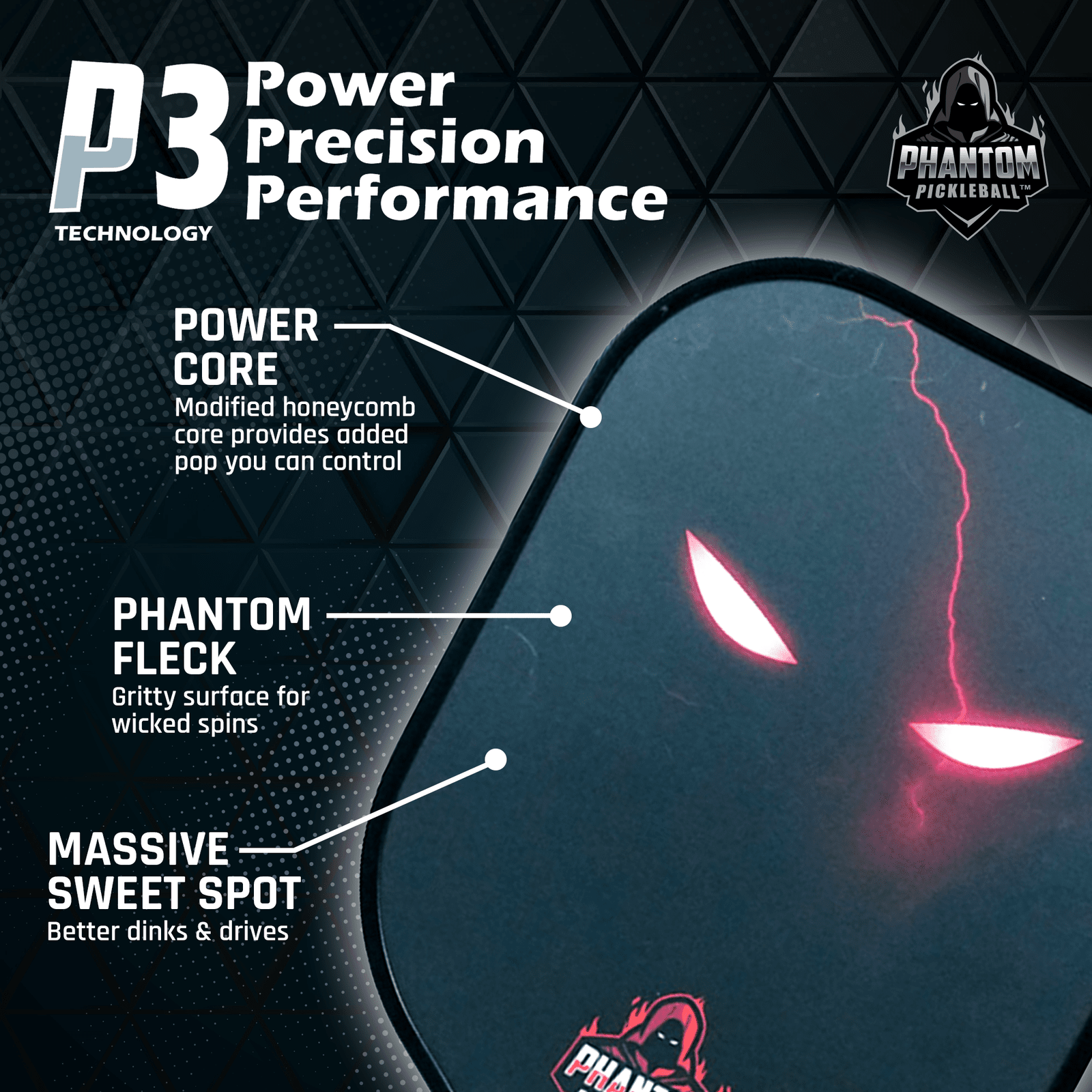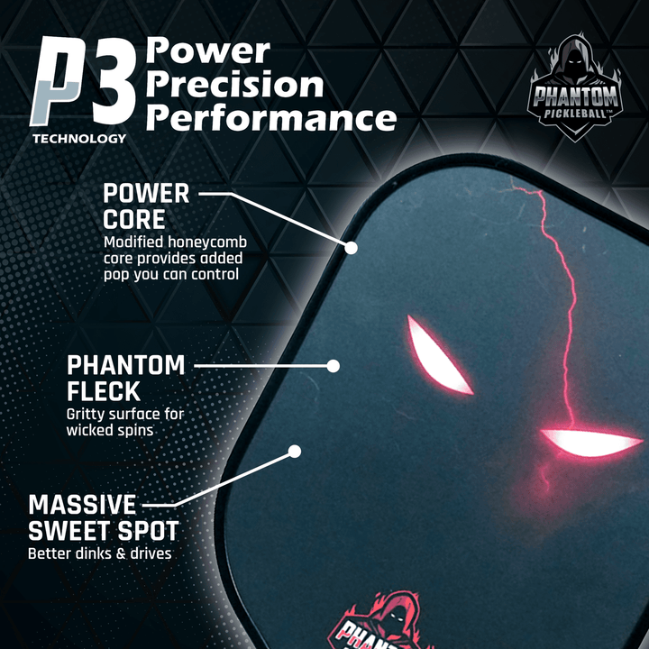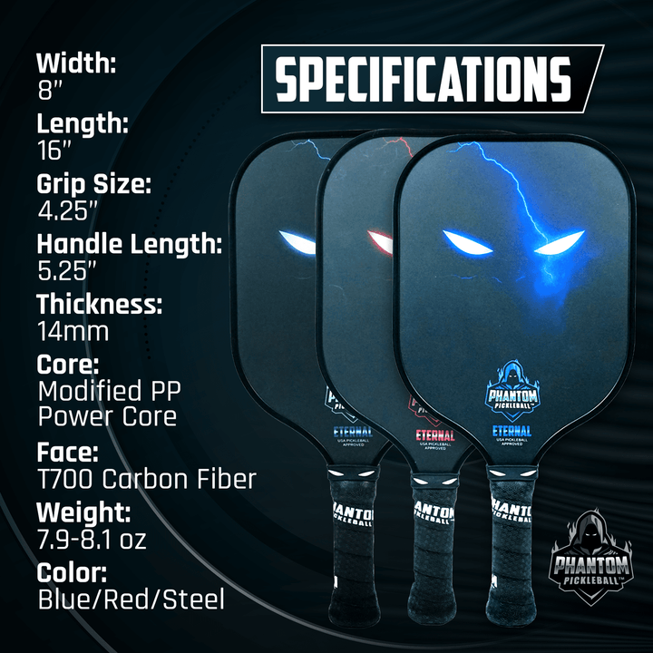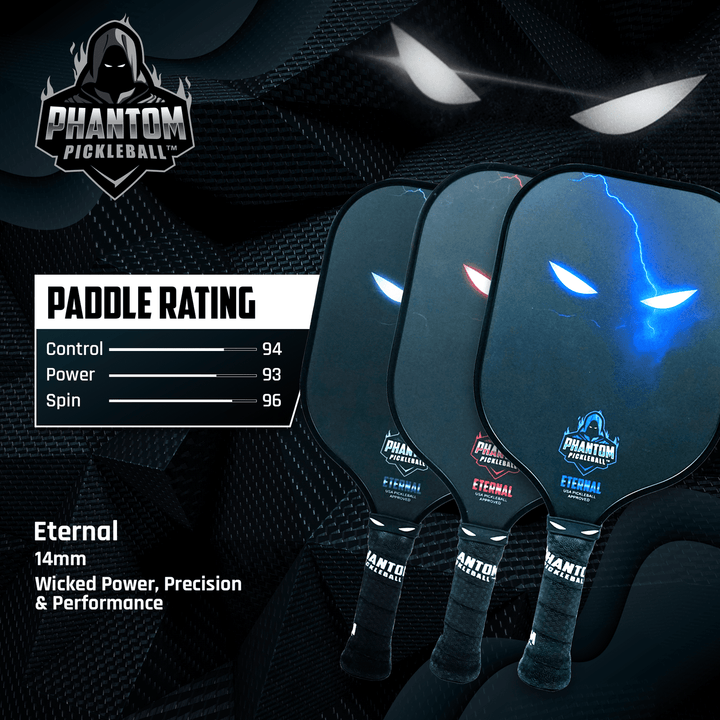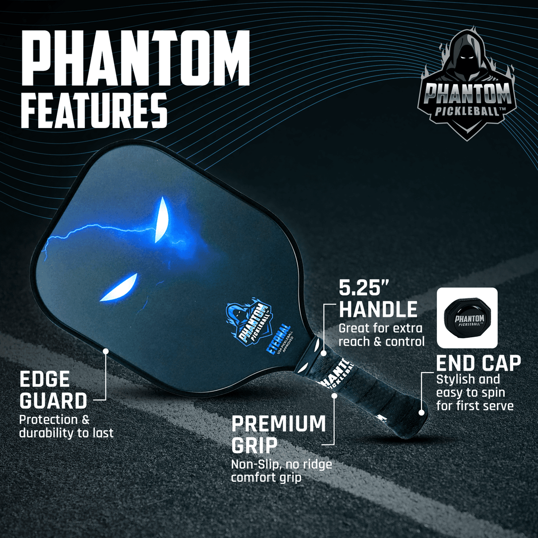 The PHANTOM ETERNAL is the ultimate paddle in our ALL-DAY EVERYDAY SERIES. The ALL-DAY EVERYDAY SERIES is for those players that are seeking the perfect first paddle. You want to spend a little less but you still want the same quality as the top paddles. The ETERNAL will provide an explosive combination of power and accuracy. Great for generating solid groundstrokes as you learn to place the ball where you want it to go. This paddle will also deliver the accuracy needed for wicked dinks and drops. The PHANTOM ETERNAL is our 14mm mid body paddle that provides both a larger sweet spot and a little more reach.