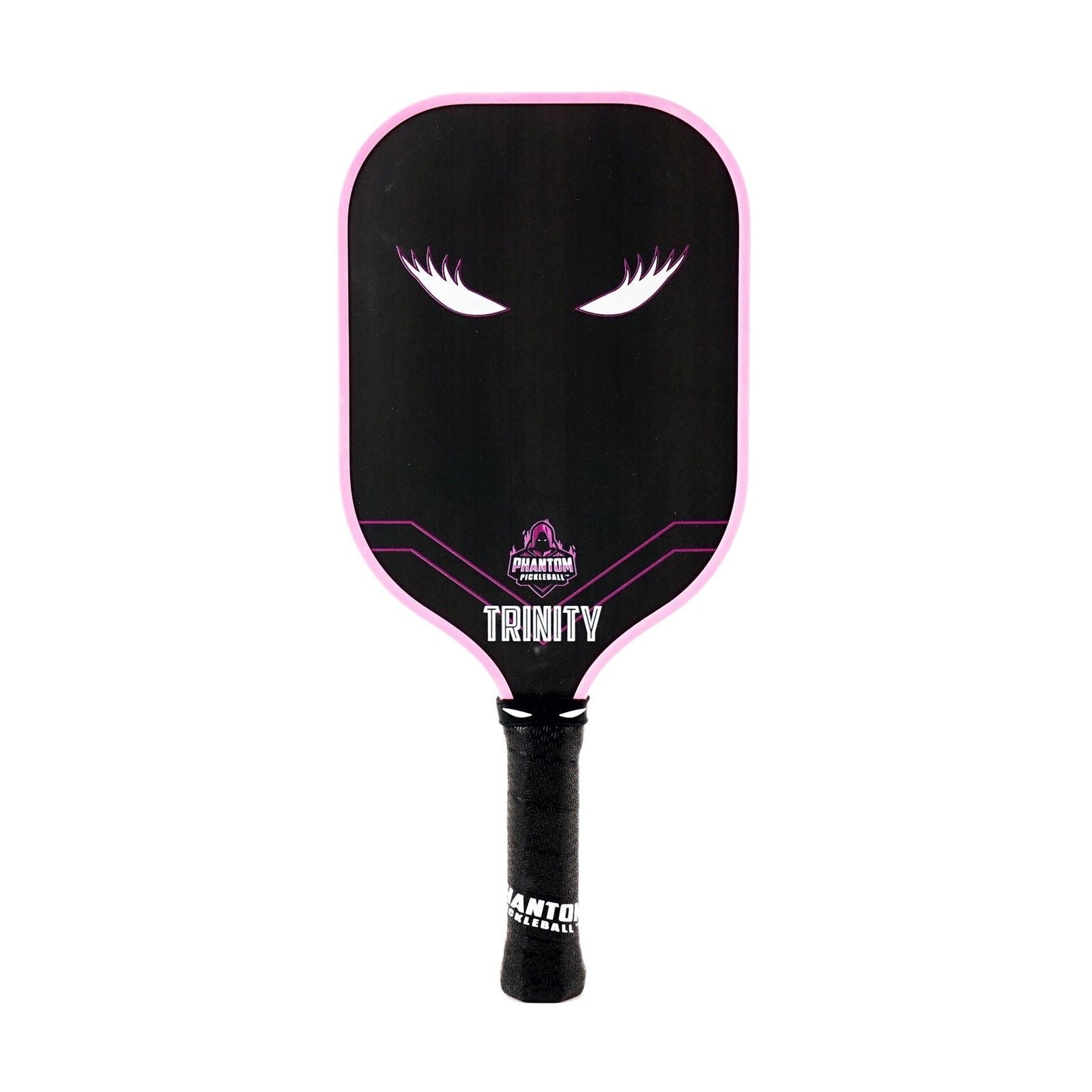 The PHANTOM LADY TRINITY is the premium paddle in our ADVANCED RESPONSE SERIES. The ADVANCED RESPONSE SERIES is for those intermediate to pro players that are in pursuit of the ideal balance and explosiveness in a luxury line paddle. Your needs are changing quickly, and you want a weapon in your hand that encompasses all the recent technological improvements featured in today’s top paddles. The LADY TRINITY will provide a smooth combination of precision power and responsive spin. Wicked for generating reliable groundstrokes while allowing the raw carbon surface to bend the ball to your will. The PHANTOM LADY TRINITY is our 14mm long body paddle that provides both a soft sweet spot and extended reach for shots that will impress.