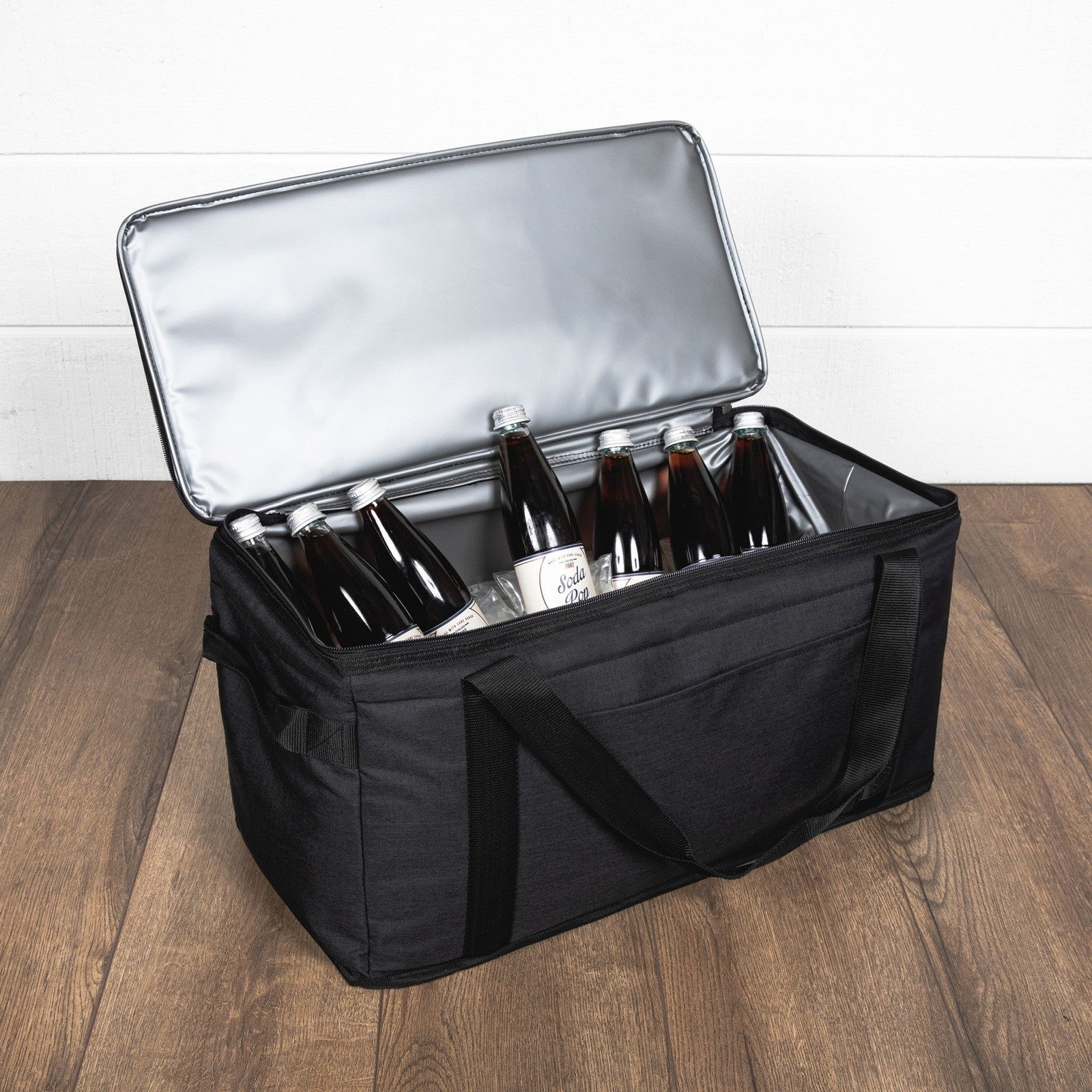 Headed to a big tailgate? Camping with a group? Snack parent for a thirsty crew? Enter the 64 Can Collapsible Cooler, an insulated soft beverage tote with seriously big capacity! This soft-sided, insulated picnic tote features a water-resistant interior and easily compacts for storage or post-party transport. When you’re through all 64 cans, just secure it to a large pack with the included securable bungee cord or fold it up into another carrier. Go ahead and pack up more than 5 12-packs or pop in some brews and soda with your full picnic - this insulated cooler tote is versatile, durable, and ready for some action! Keep the bubbly bevs flowing on-the-go while you’re having fun with family and friends with the 64 Can Collapsible Cooler