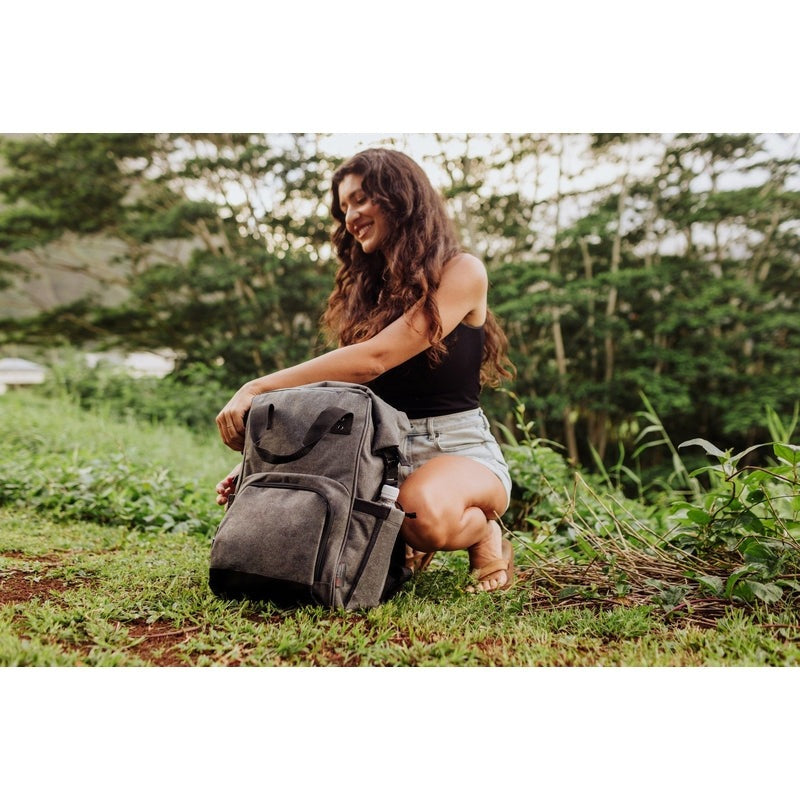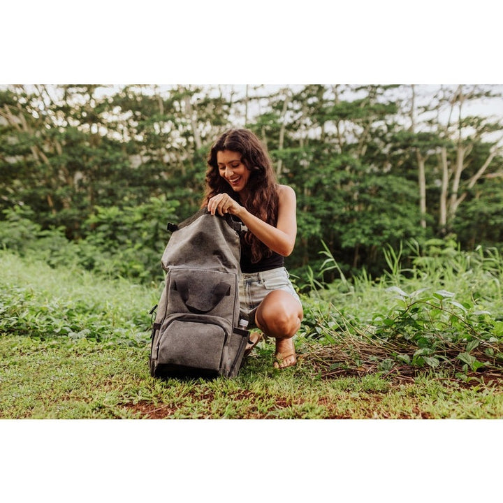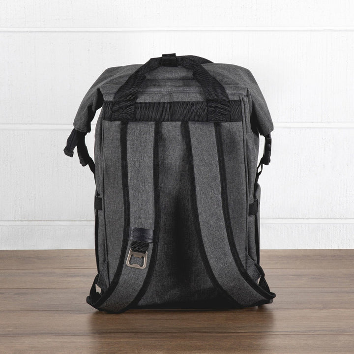 What if you could carry a chilled party over any terrain in total comfort? Now you can - with the On The Go Roll-Top Backpack Cooler. With space for up to 42 cans of your favorite beverages, as well as front and side storage compartments, a bottle opener, and comfy padding, you can carry an entire picnic right on your back in this insulated cooler bag. Our backpack cooler is great for hikes, beach days, picnics at the park, watching the big game - and more. This soft cooler packs stylish good looks and a whole lot of function into one insulated camping cooler backpack.