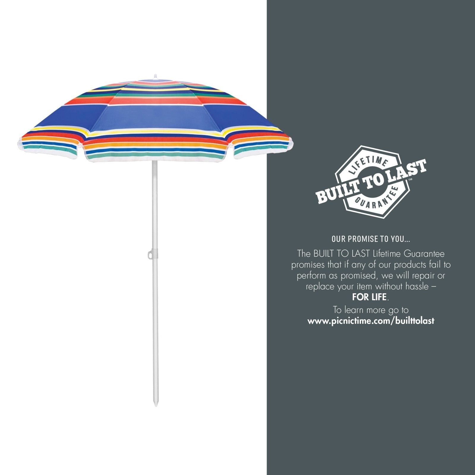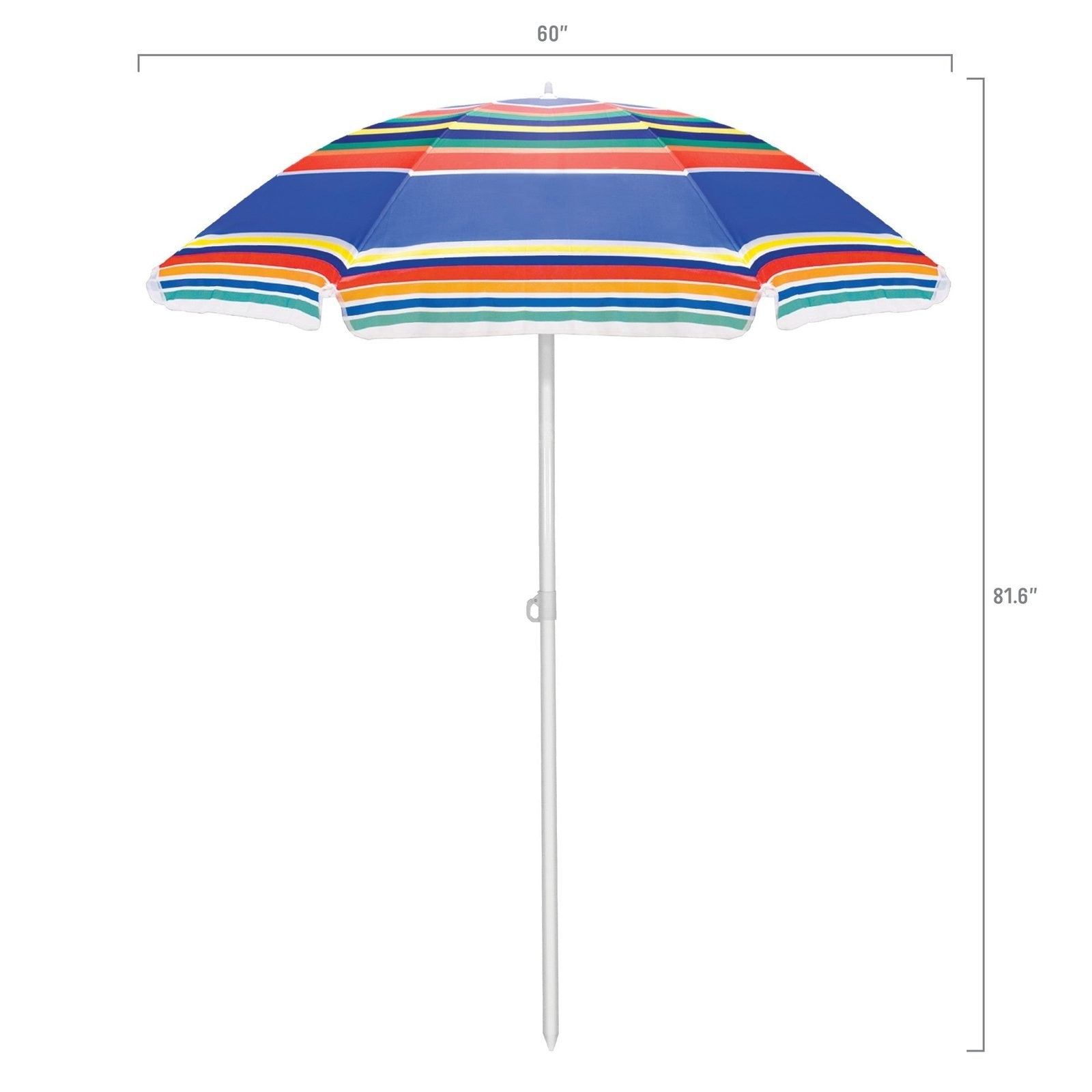 Better to have it and not need it than need it and not have it - The ONIVA – a Picnic Time Brand Portable Beach Umbrella, is a stylish sun shade that packs into a clear carrying case with shoulder strap. The large canopy (60" diameter), 81.1"-tall pole, 155-degree tilting range, and pointed end for easier penetration in sand make this the ultimate portable beach umbrella to keep you and yours safe from UV rays.