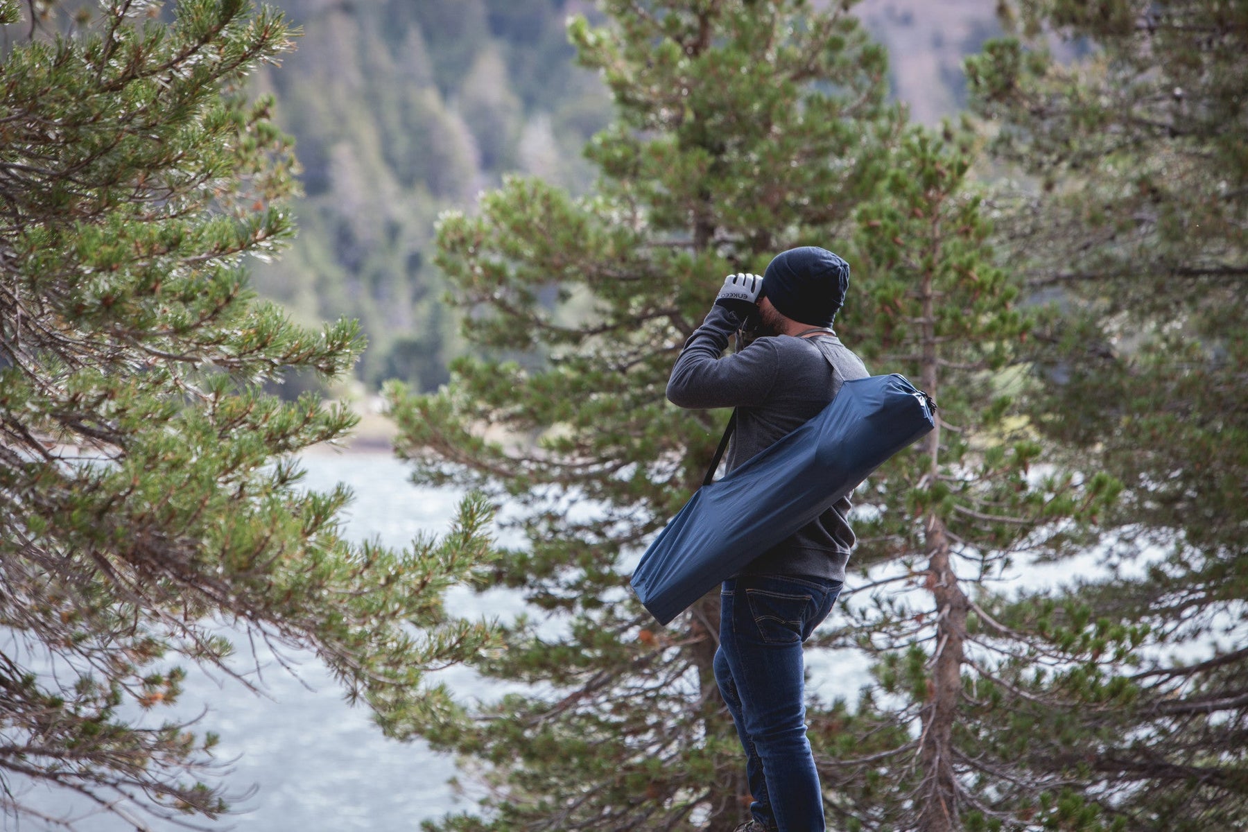 Spend more time sun-gazing, star-gazing, and straight up relaxing with the no-fuss PTZ Camp Chair, your go-to portable chair with a simple and quick set-up design. This folding beach chair features a natural recline and a mesh drink holder in the right armrest for a deluxe seat in the great outdoors. With a sturdy frame that folds into a drawstring carrying bag with shoulder strap, this camping chair transports to the park, beach, picnic, campsite, backyard and more with ease. Wherever you go, your trusty PTZ Camp Chair can easily join in the fun and provide an ideal place to kick back and relax. This portable folding chair is a true chameleon - a lawn chair, a camping chair, a beach chair, or a good ol' sitting-on-your-porch-watching-the-world-go-by chair!