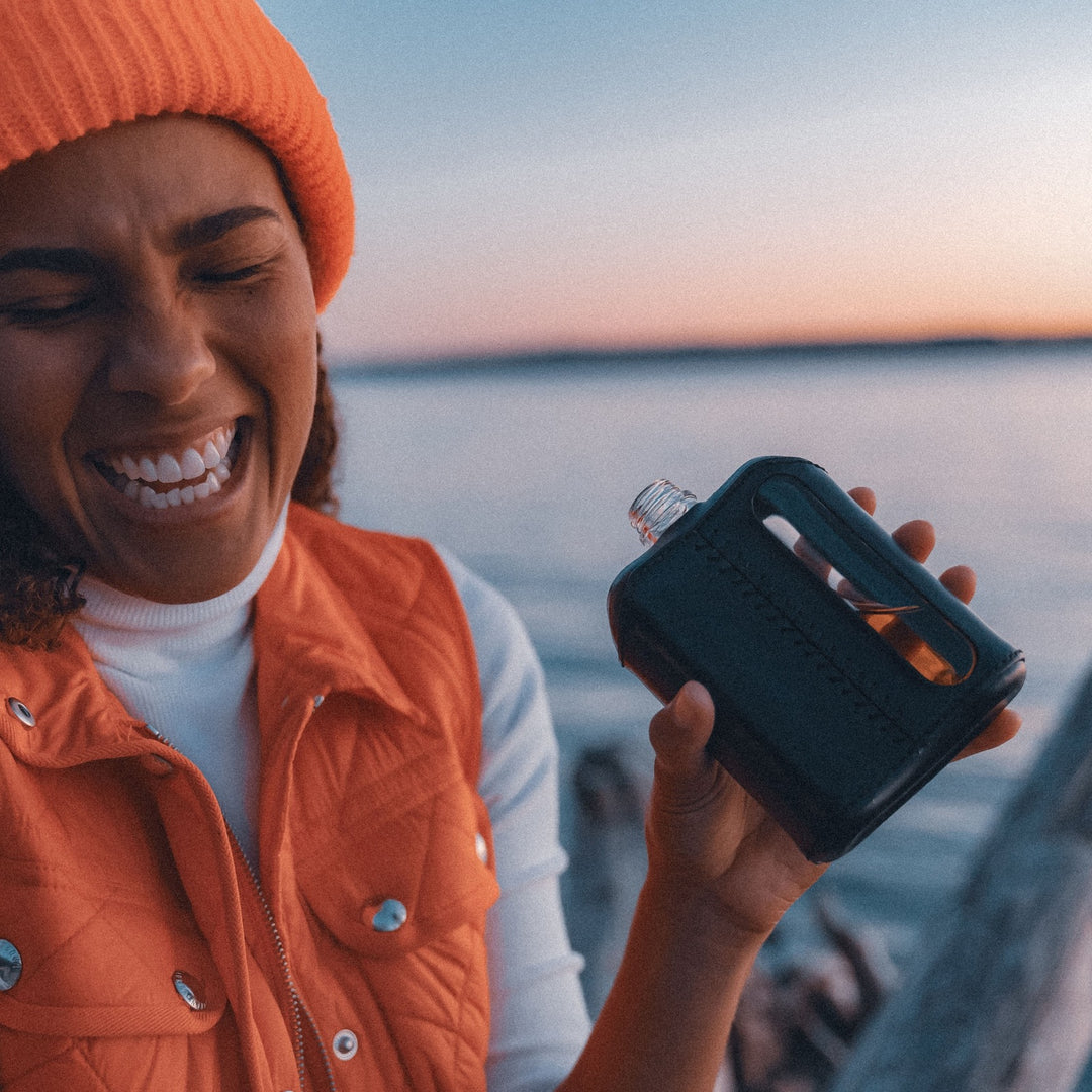 Compact, No-Spill Design: The Ragproper Flask, precisely tailored to fit comfortably in your hand, is the trusty guardian of your spirits during travel. Its clever easy-pour window, nestled within the leather, makes checking your liquid levels a breeze.