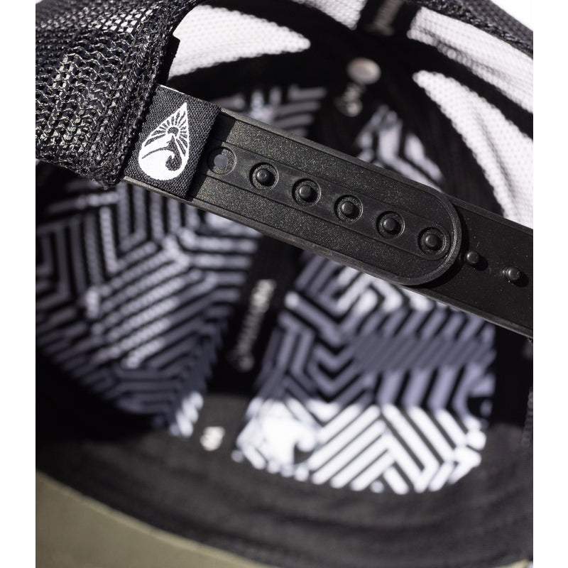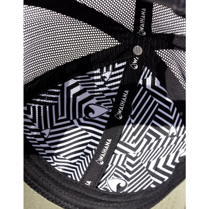 Introducing the Ranger Green Mauka Trucker, crafted with luxurious CVC fabric for a classic look. Mesh back trucker hat with snapback closure and woven label patch showcasing our love for Hawaii's ocean and mountains. Elegant enough for a night out, yet functional for any activity.