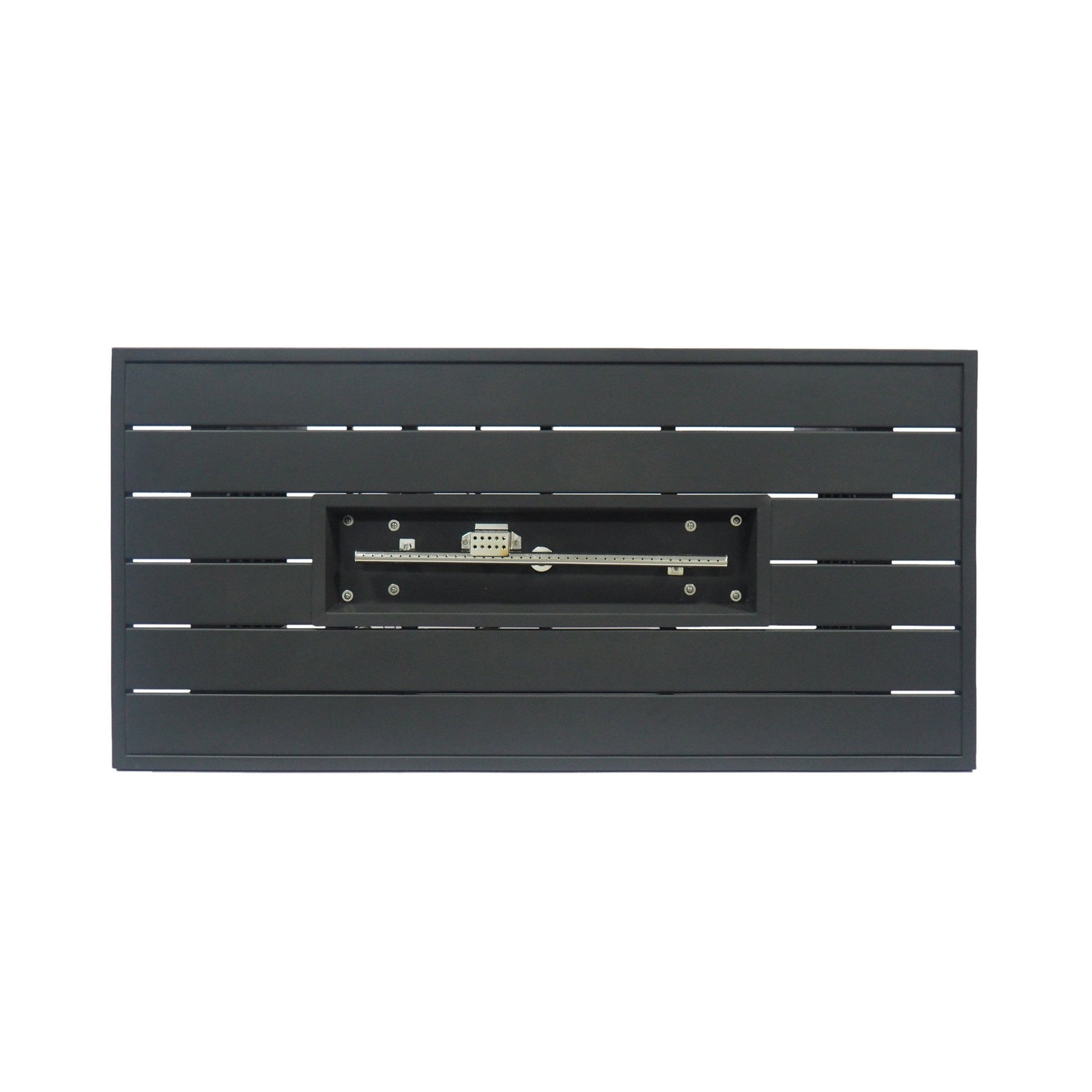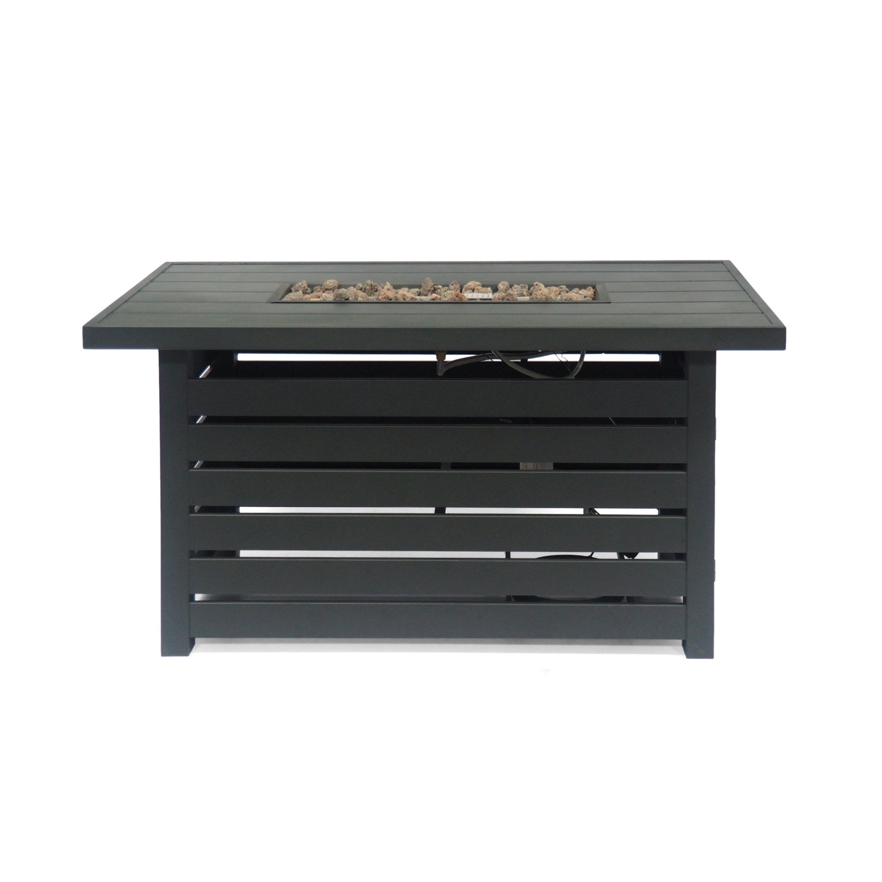 This rectangular iron fire pit is designed for outdoor use, ideal for patios and backyards. It offers functional warmth with a sleek black iron finish that complements various outdoor settings.