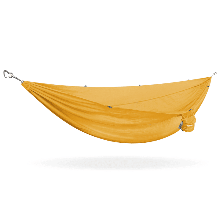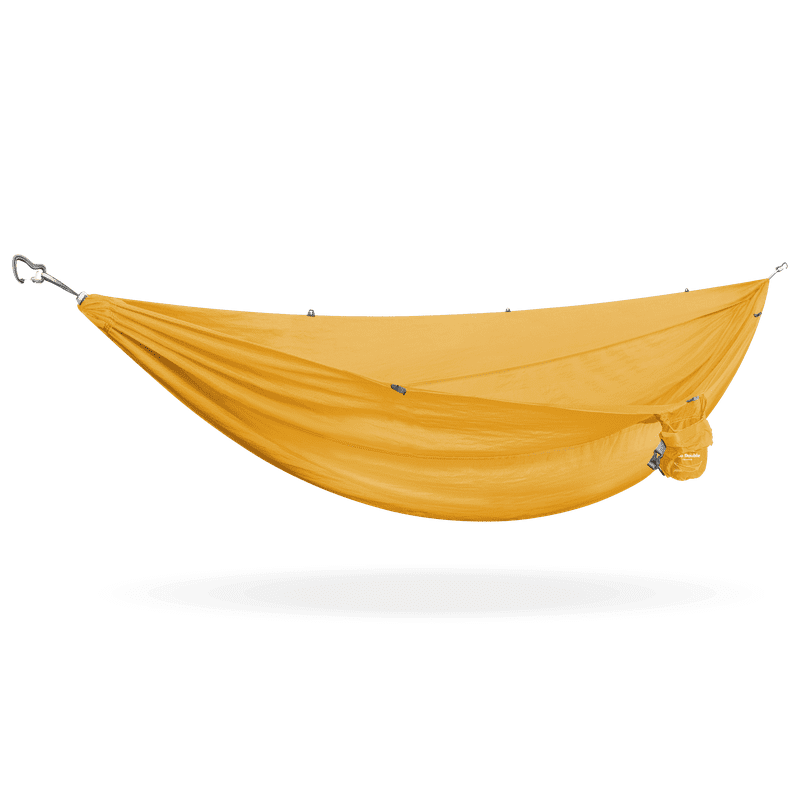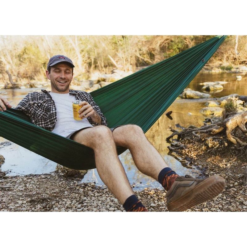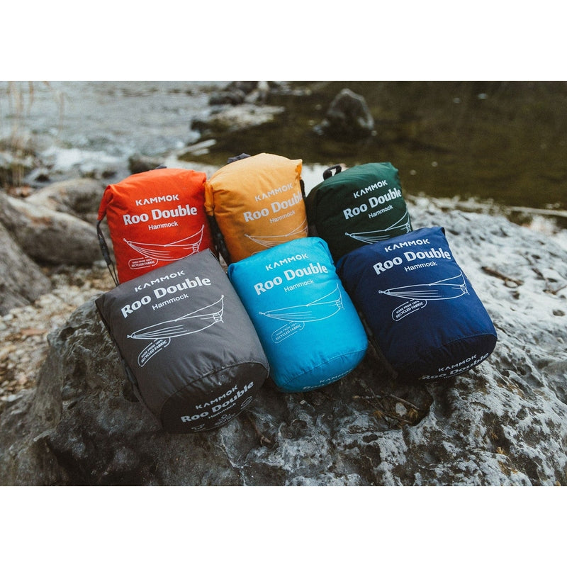The Roo Double hammock neatly packs into an attached roll-top, water-resistant stuff sack about the size of a jar of peanut butter. Keep it in your day pack or the backseat of your car, and you’ll always be ready to hang.