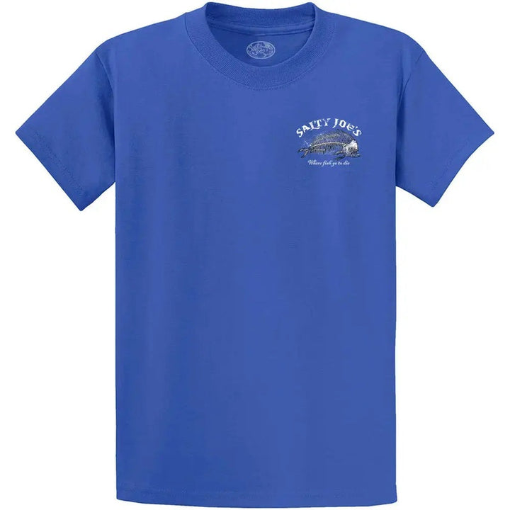 Carefully created, the logo displays the fine textures of the Ghost Fish's bones, its shape alive with a blend of artistic skill and craft. The slightly aged graphics give a feeling of authenticity, as if the emblem has faced many adventures. Against the heavyweight cotton tee, the logo shows the tee's strength. Like the Ghost Fish in deep waters, this tee supports the wearer in outdoor challenges. The Salty Joe's Ghost Fish Heavyweight Cotton Tee is sure to be your next favorite fishing tee.