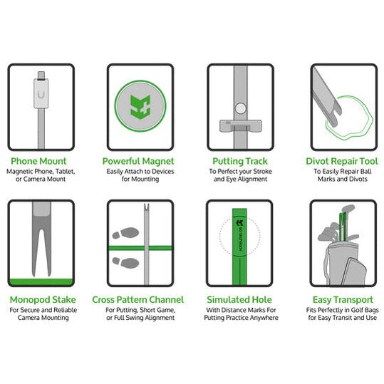 Finally, the Scratch Stick can be used to simplify your tools and golf bag. By combining the alignment sticks, putting stick, and video attachment into one compact tool, you can reduce the amount of clutter in your bag and improve your game at the same time.