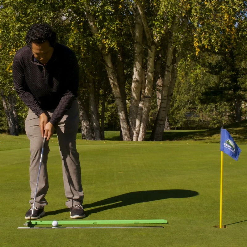 The primary function of the Scratch Stick is to align full-swing shots in the practice area or on the course. It does this by providing two alignment sticks that can be placed on the ground in front of you. The sticks help you visualize your target line and ensure that you are properly aligned.