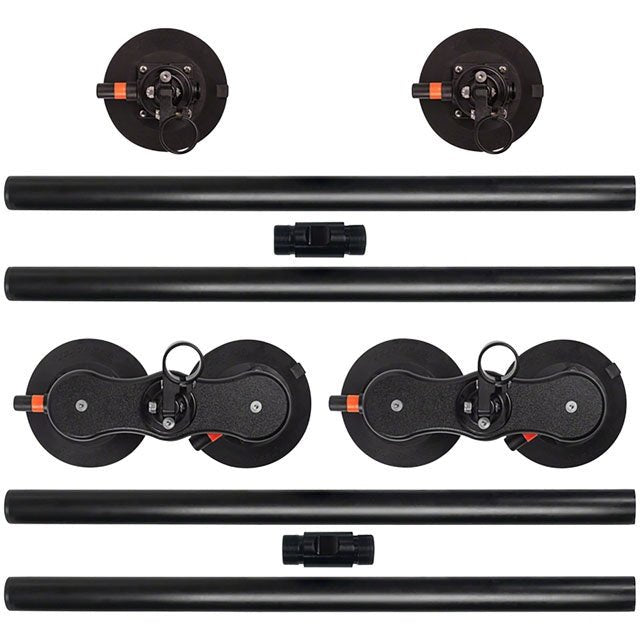 The Monkey Bars are 48" long round black-anodized aluminum cross bars to which you can attach accessories for activities such as kayaking, skiing, surfing and paddle boarding, biking, or hauling cargo. Powered by 6" powerful (210lb pull-strength rated each) vacuum mounts (4 up front and 2 in the rear), the Monkey Bars fit on just about any car with a roof. Have a wide or narrow roof? No worries, the vacuum mounts can be moved to any position on the bar to ensure a perfect fit for any vehicle.