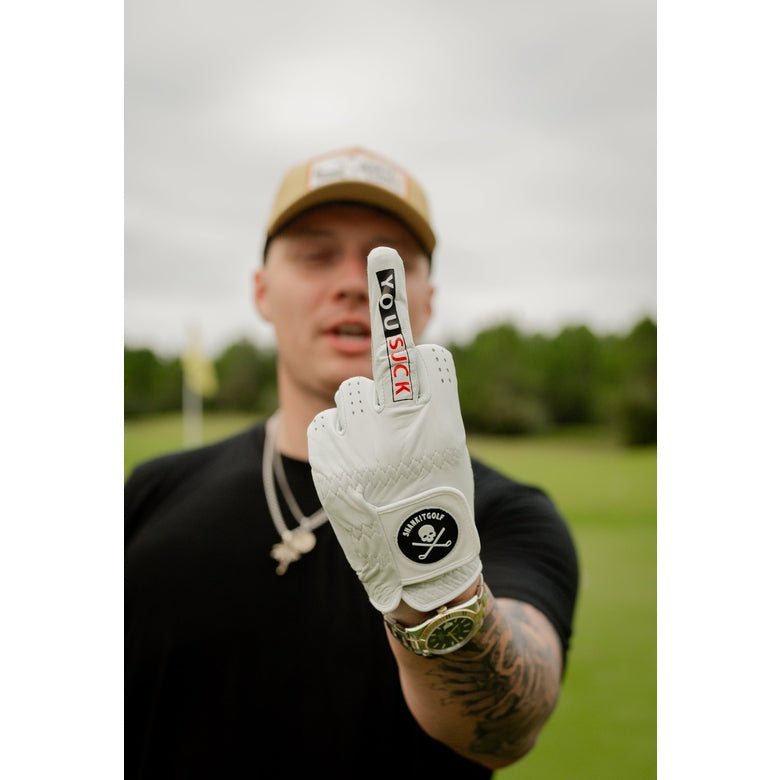 HUMOROUS EXPRESSIVE - Navigate etiquette and competition uniquely with this "You Suck" birdie golf glove. Convey a compliment while staying true to the competitive nature of the sport without having to speak a word. Let the golf glove do the talking