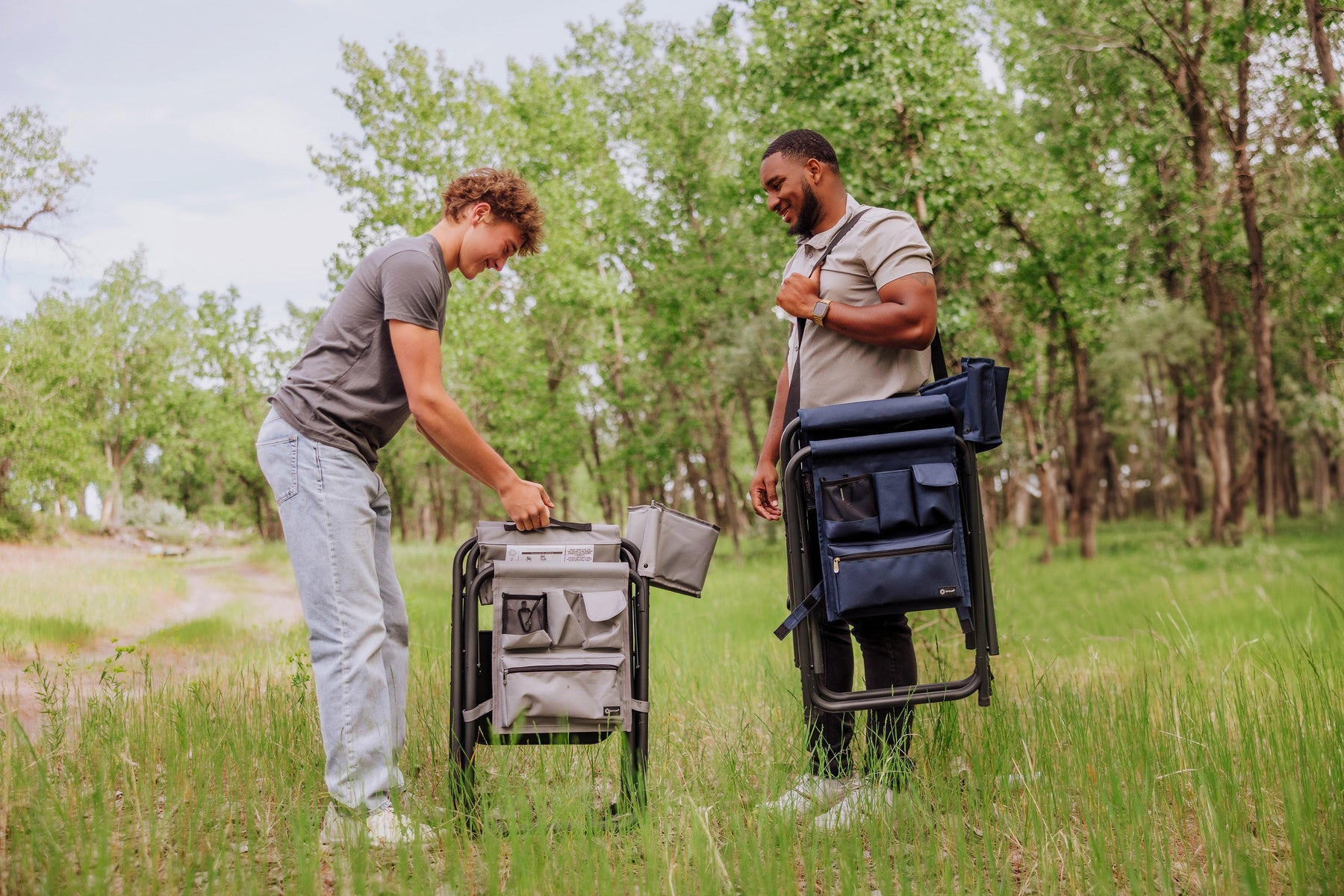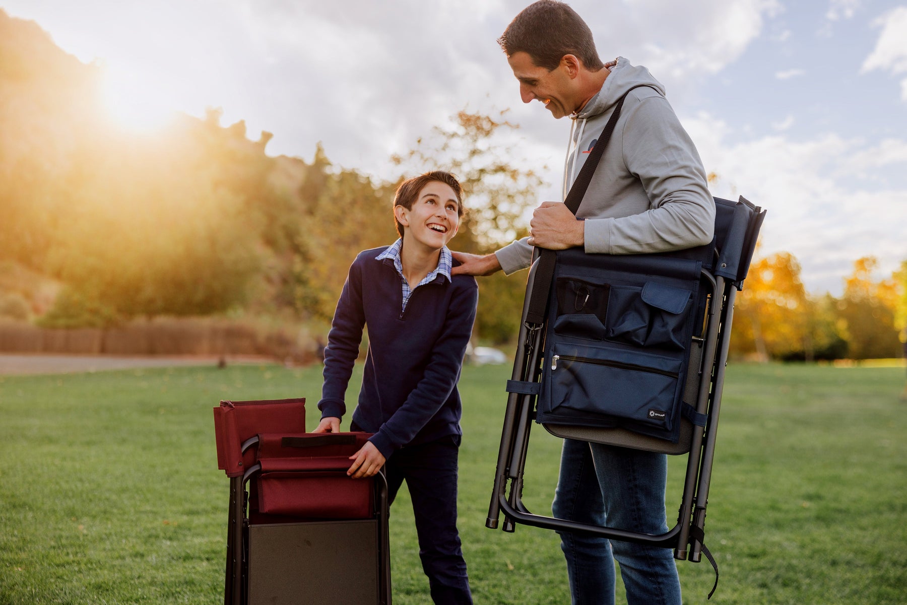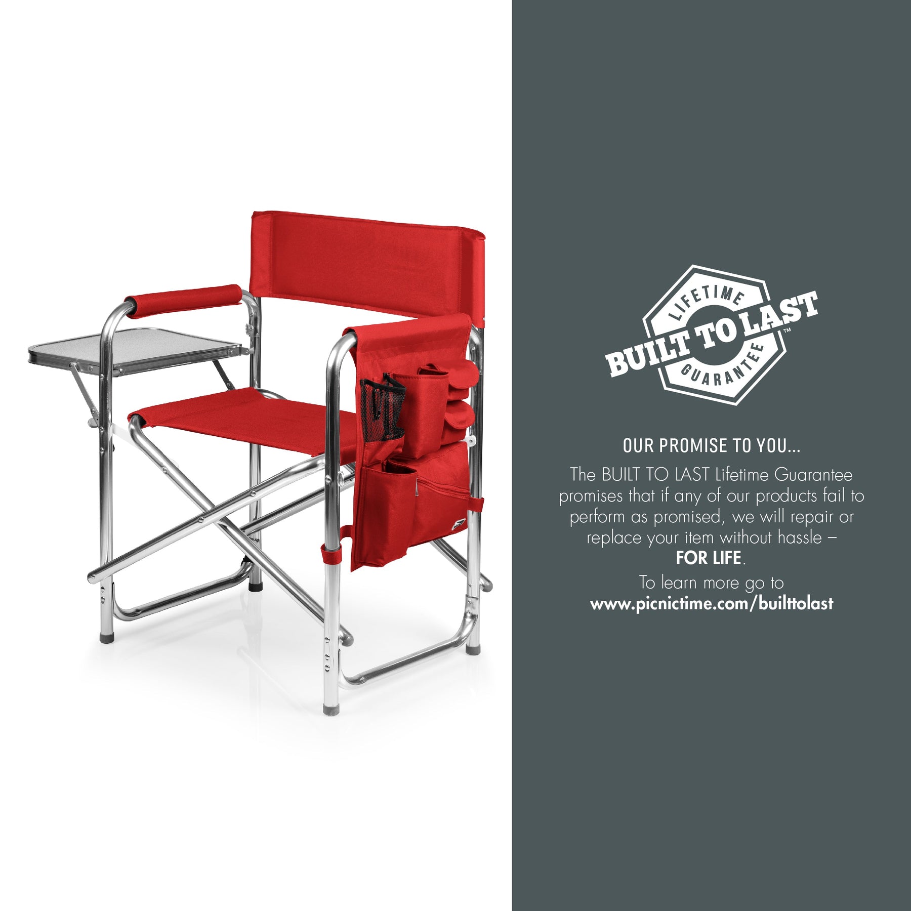 It's a beach chair for grownups and a camp chair for adults - the Sports Chair with Side Table is the last and greatest portable outdoor folding chair you’ll ever need. With classic lines and modern touches, this smart travel chair made of durable polyester canvas on a foldable and lightweight aluminum frame is the deluxe folding chair you deserve. Your seat is extra-wide (19.5") and made of durable 600D polyester, so you know it’s built to last. Features abound on this lawn and picnic-ready directors chair with padded seat and armrests, fold-out side table, hanging arm rest caddy for holding books & magazines, two insulated beverage pockets, and a variety of additional pockets for extras. Grab-and-go with the underseat carrying handles or use the adjustable, detachable shoulder strap for longer treks to the campsite, the beach, or across the stadium. This outdoor camping chair is ideal for camping, picnicking, concerts in the park, or watching your favorite sport comfortably from the sidelines. Your companions may be melting in the summer heat, but you've got shade for days with the Oniva Beach Umbrella (sold separately) attached to the built-in umbrella loop. But there’s no need to gloat - this outdoor camping chair does all the bragging for you without saying a word.