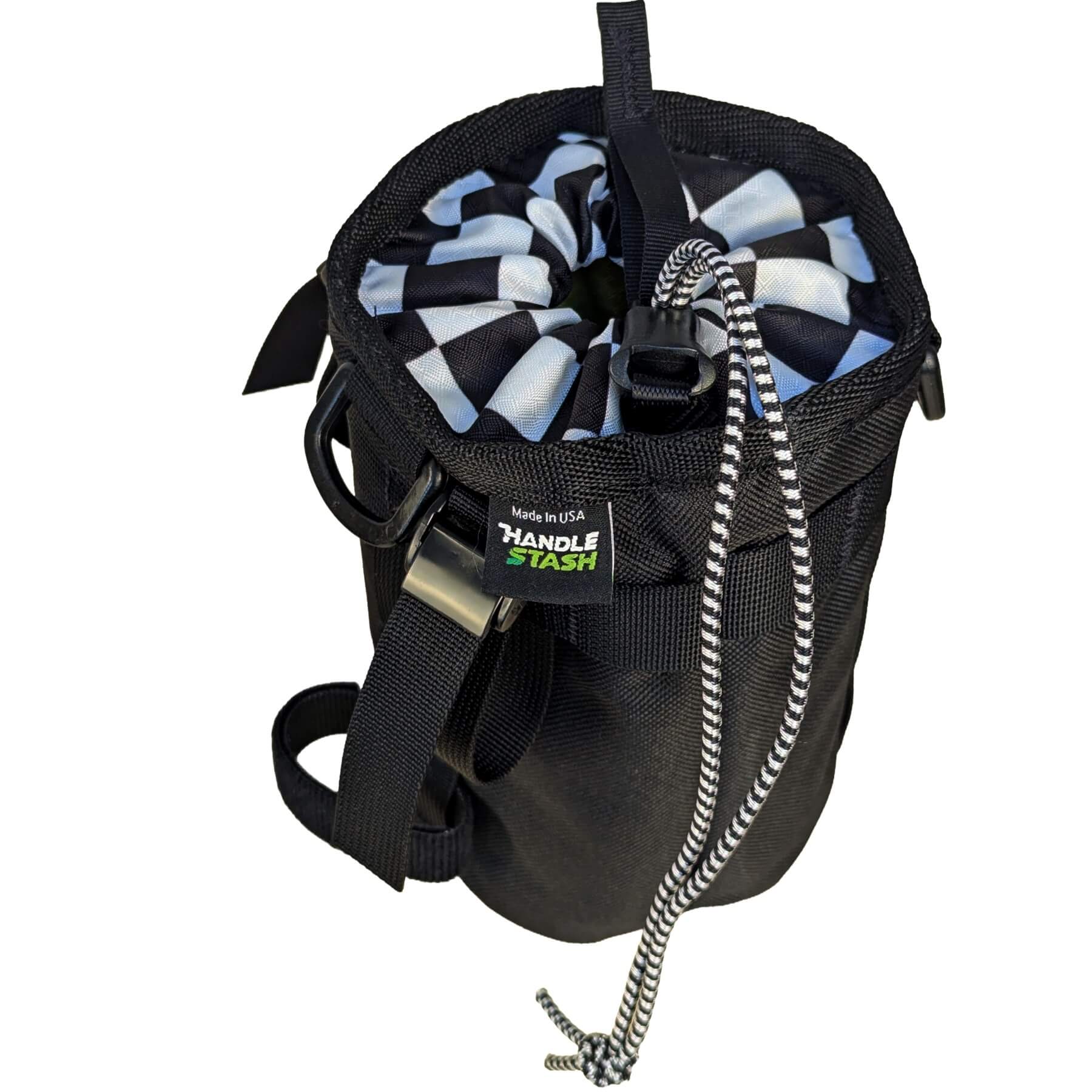 Sized to carry larger bottles like a Nalgene, HydroFlask, or Yeti, the HandleStash Stem Bag is insulated to hold ice for up to 7 hours. Stem Bags mount between your stem and handlebar using 3 supplied straps. One handed cinch lets you access snacks or your water bottle while on the go.