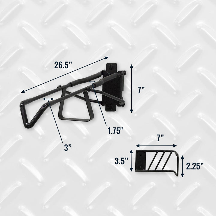 Protect your walls with the scuff-free tire catch and built-in mechanical stop