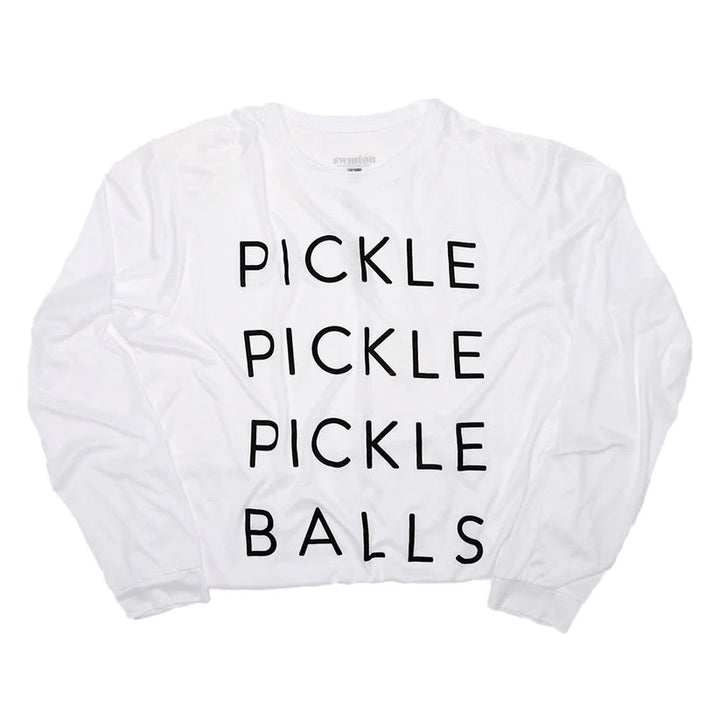 Great when you want a little more sun protection and coverage, these long sleeve water shirts wick away moisture and dry quickly and are rated UPF 50+. They are a unisex style so they run a little roomy. Women love layering them over the Swinton tank for a little extra warmth before or after your game. Made of 100% polyester jersey. Pickle Pickle Pickle Balls.