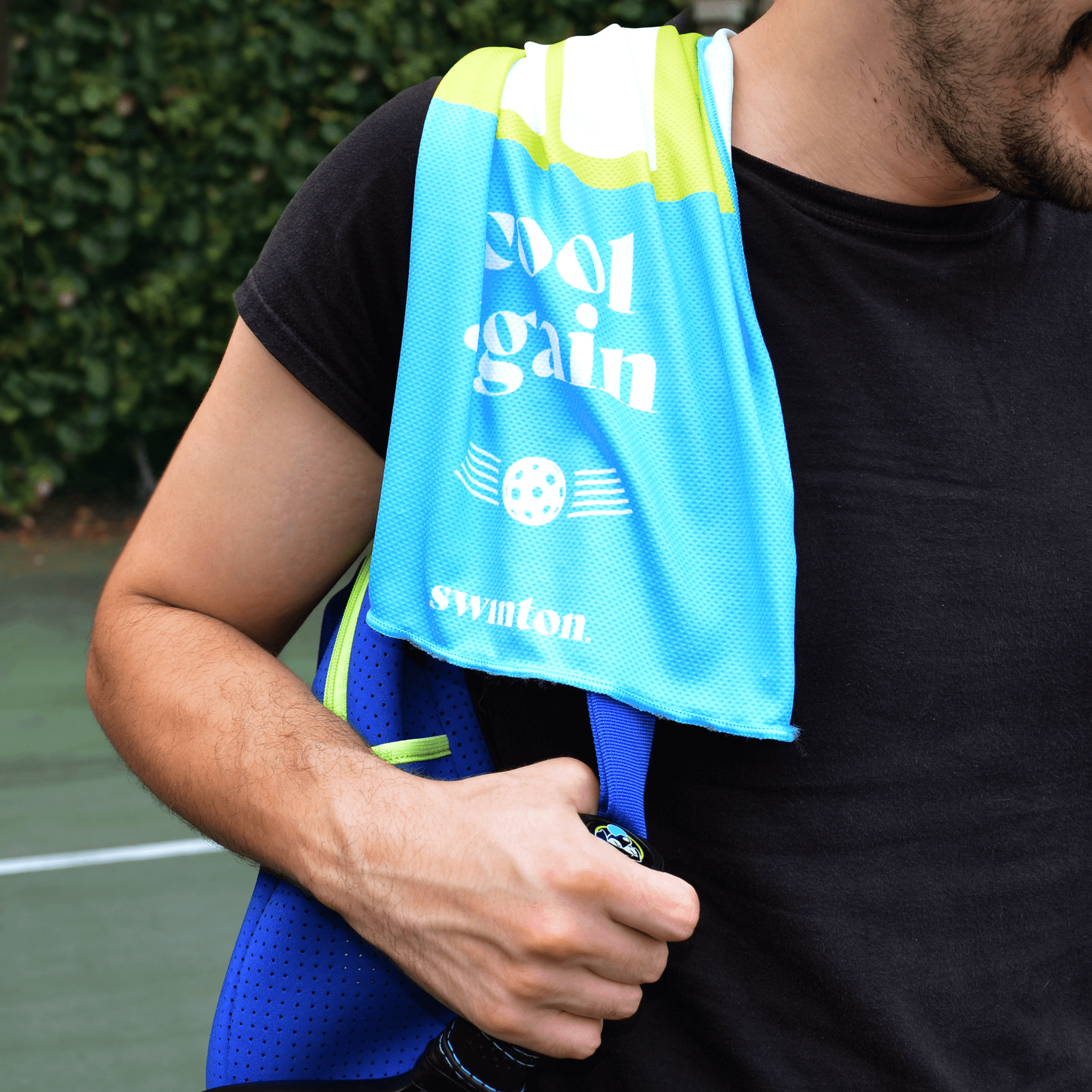 Our pickleball cooling towel is top notch. It features a fun and unique pickleball court design and makes a great gift for yourself or your favorite pickleball player. Cool off on the coolest courts around - pickleball courts!