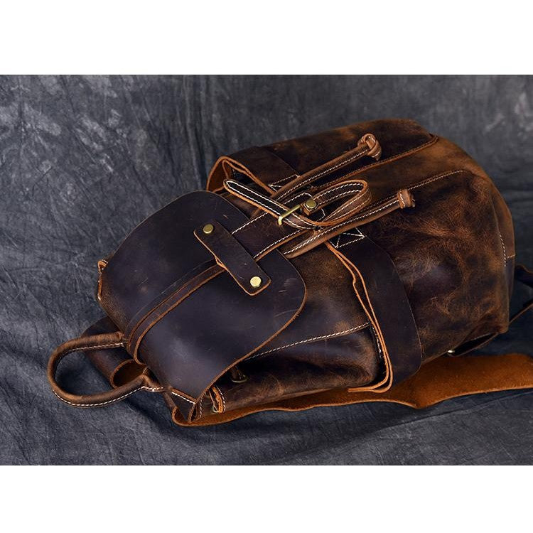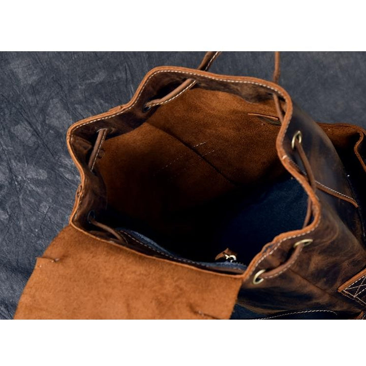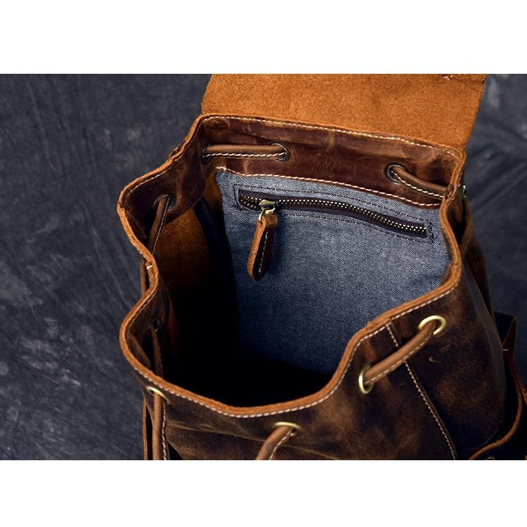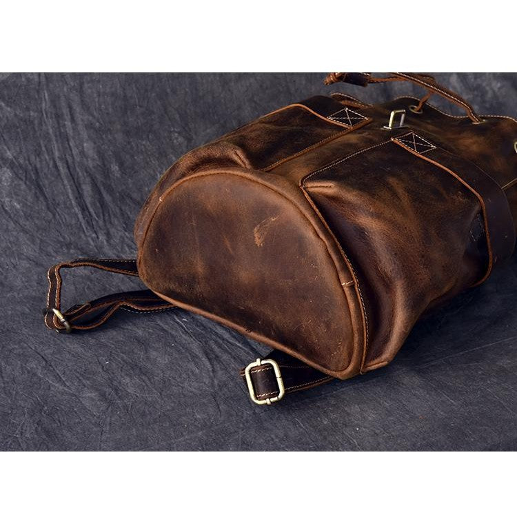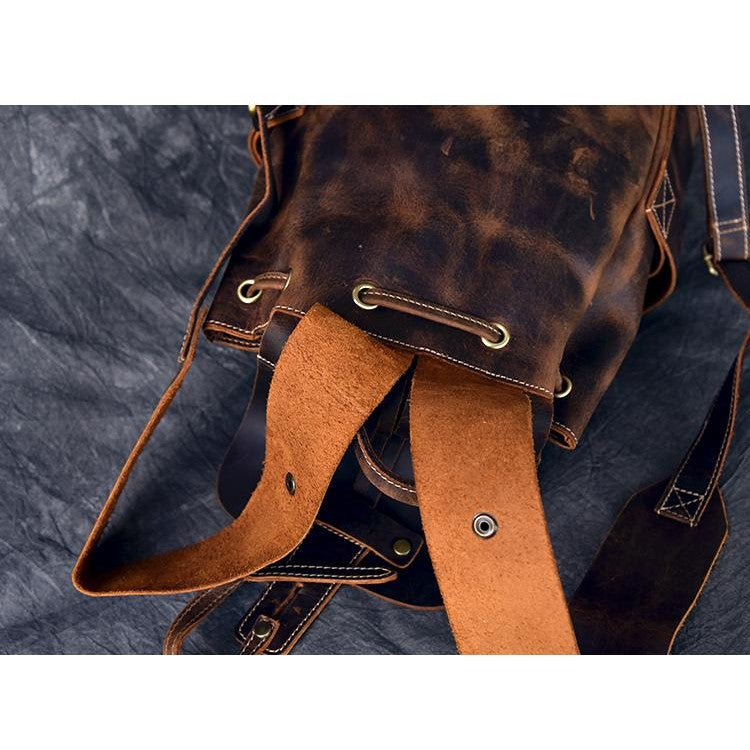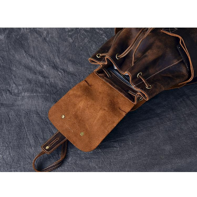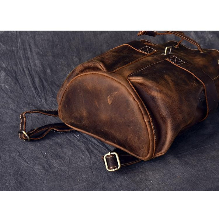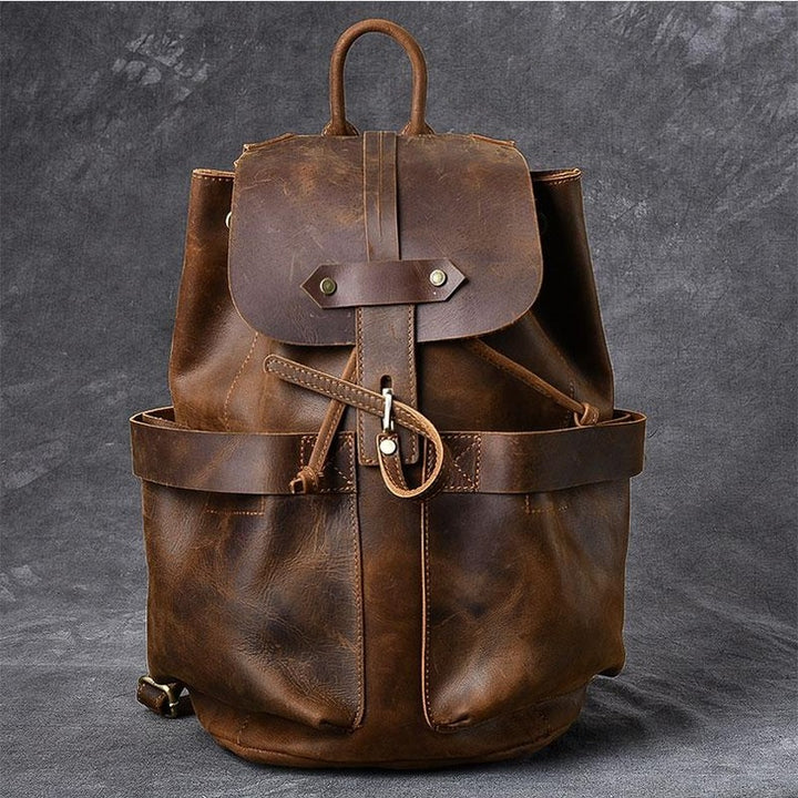 Add a unique touch to your daily outfit with The Olaf Rucksack. Distinguished in its retro style, this bag has two prominent front pockets, along with a large main compartment. The leather straps have two smaller straps overlays, designed to easily clip small items such as glasses or headphones. It is made out of high quality leather, which is durable and lightweight. It really excels in outdoor environments, as The Olaf proves to be the ultimate carry companion for sports, mountaineering, climbing and other such adventurous endeavors.