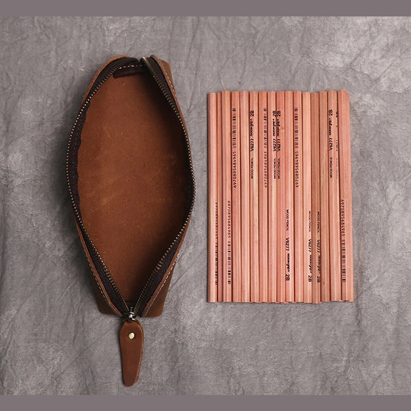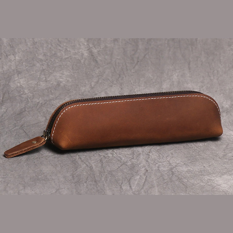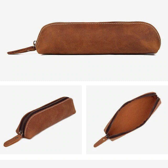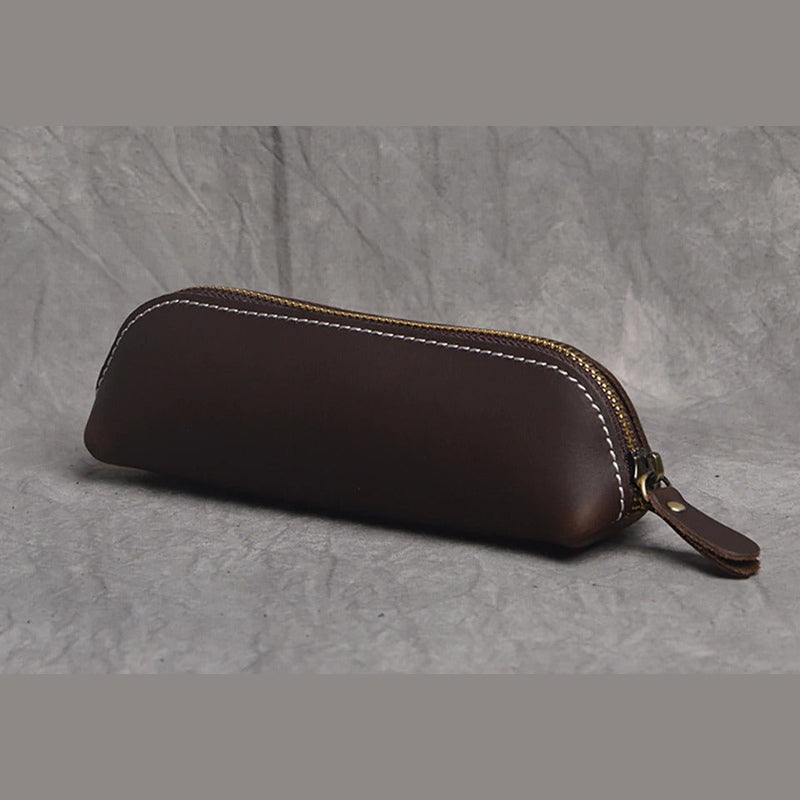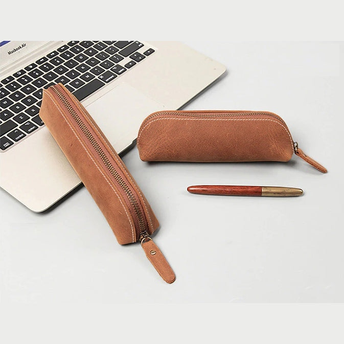 The Paavo Leather Pen Case is made of full grain leather and handmade with meticulous stitching and attention to detail. The Paavo is constructed with the utmost care using top-quality materials. It is the perfect case for protecting and transporting fountain pens, pencils, markers, makeup, or any other writing instrument. The Paavo pen case is made from the highest quality Full Grain Leather that will develop a beautiful patina and is finished with a brass YKK zipper. This pen case is handmade with quality and designed with practicality in mind. The Paavo Leather Pen Case | Leather Makeup Pouch offers plenty of space for your makeup or accessories and can be used when traveling, as well as at work or school. It's durable, lightweight, and made with full grain leather, so it will stand up to daily wear and tear. The Paavo is the perfect gift for anyone and is the perfect size for an everyday handbag accessory.