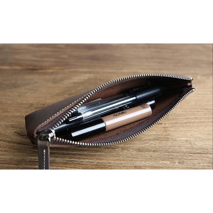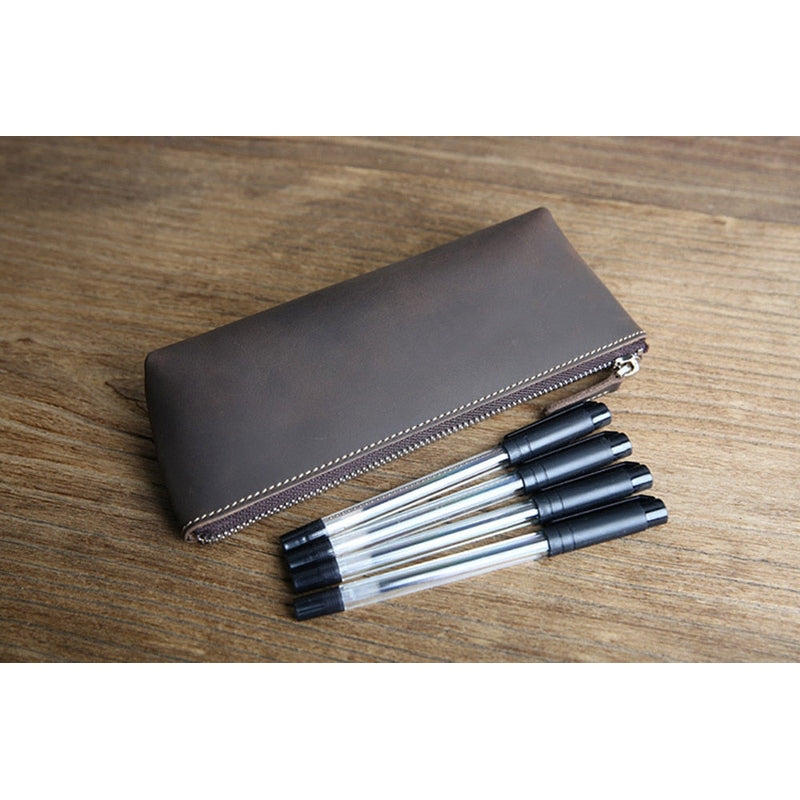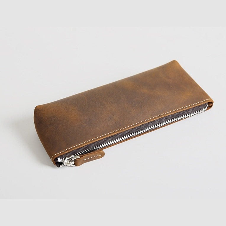 A leather case that is not only stylish but also practical. The Pallavi is a perfect combination of style and practicality. Our leather pencil case is an elegant way to store your makeup and accessories. It is handmade by skilled craftsmen in our workshop, using only the best Full Grain Crazy Horse leather. The Pallavi Leather Pencil Case is built to last. It has a sturdy YKK zipper in front, as well as a sleek design that makes carrying it on the go easy. This handy case can be used as a pencil case or even a stylish purse accessory that will look great on any kind of outfit.