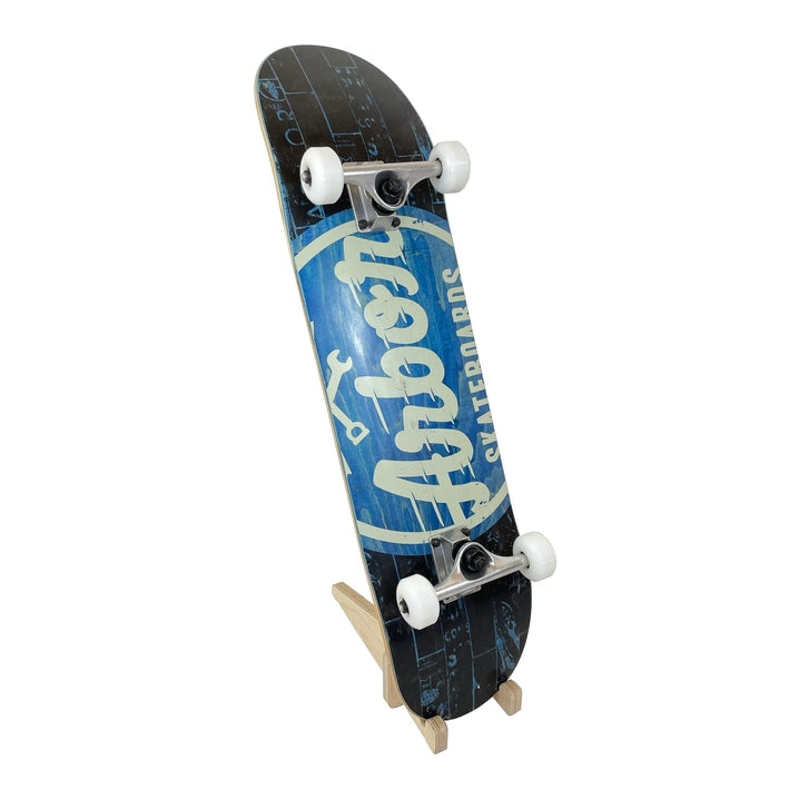 If you want to display the art on you skateboard or longboard this is the display stand for you. Made from durable Baltic Birch this rack holds you board by the tip or tail so the artwork is displayed in full view. No hardware needed as the three pieces slide together like a puzzle. This skateboard rack works as well in your garage as it does in your living room. Show off the artwork on your boards with this simple but elegant skateboard display stand!