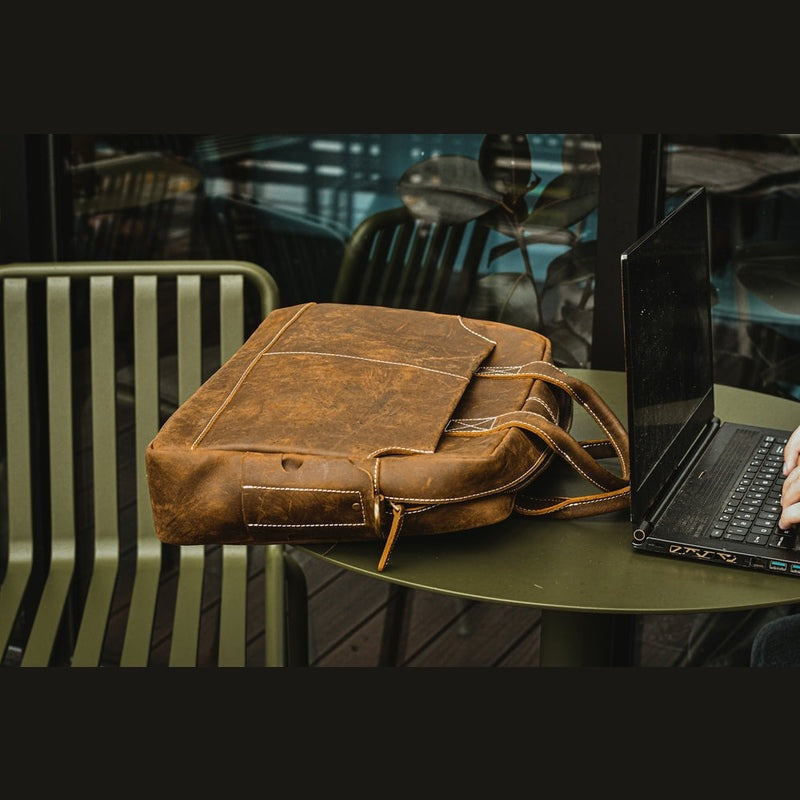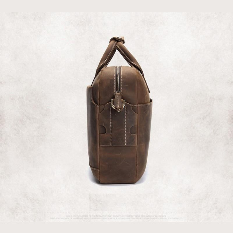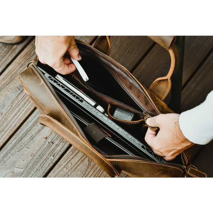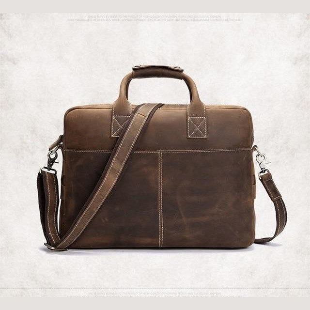The Welch Briefcase is a mature in style and efficient in service. A perfect combination of shoulder bag and briefcase that provides comfort to the wearer and the capacity for all storage needs. This bag is sturdy, made of high-quality leather, and is capable of carrying securely, valuable gadgets, laptops up to 14 inches, as well as any further items. Not only is this briefcase highly functional, but its classy in appearance, the elder statesmen of leather bags that looks like it belongs in any environment; allowing the owner to carry it confidently into any occasion, formal or not.