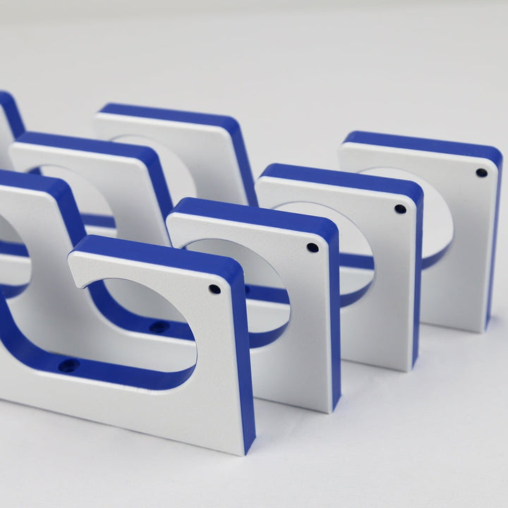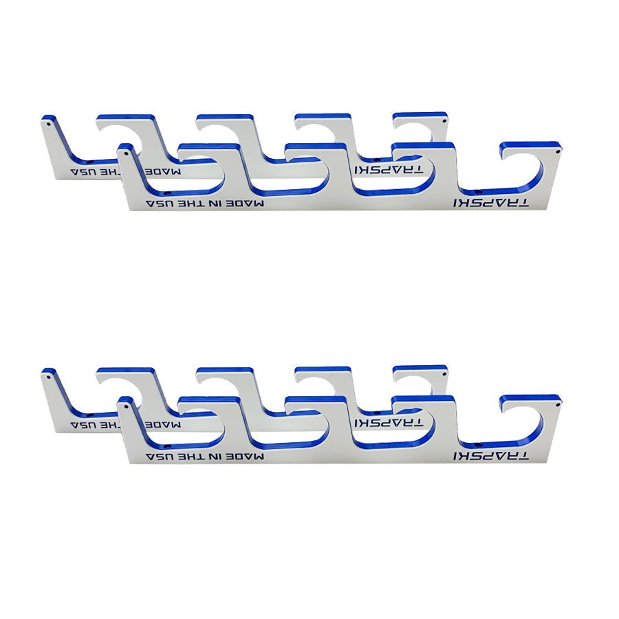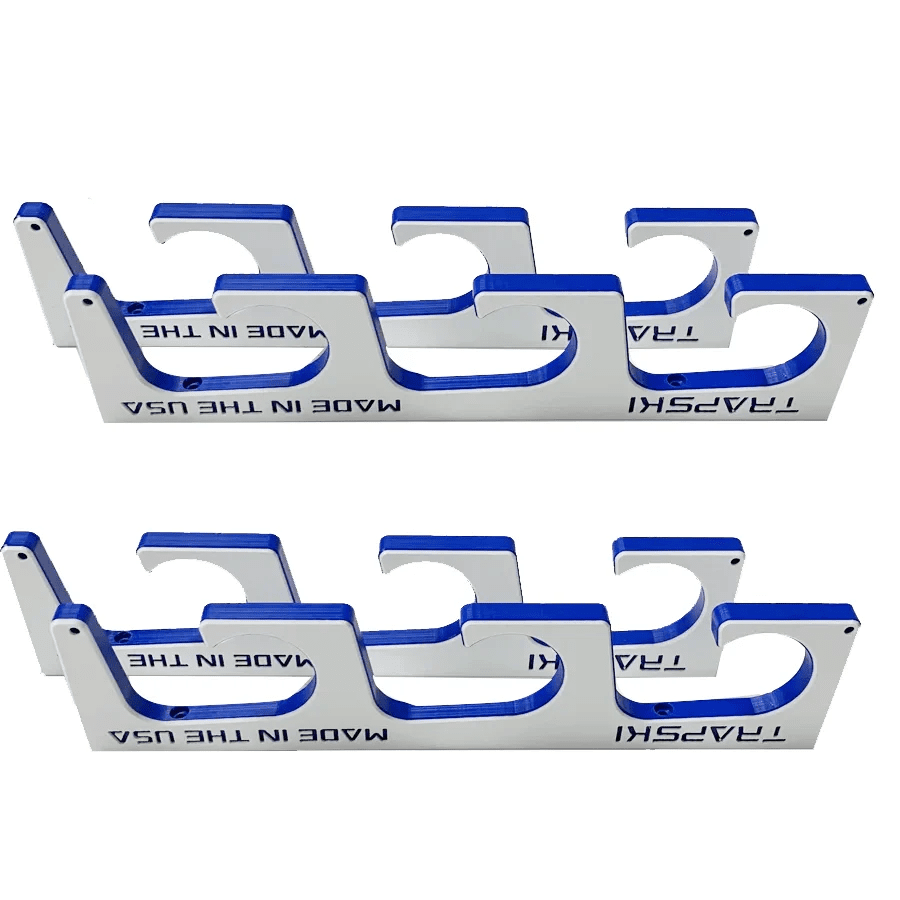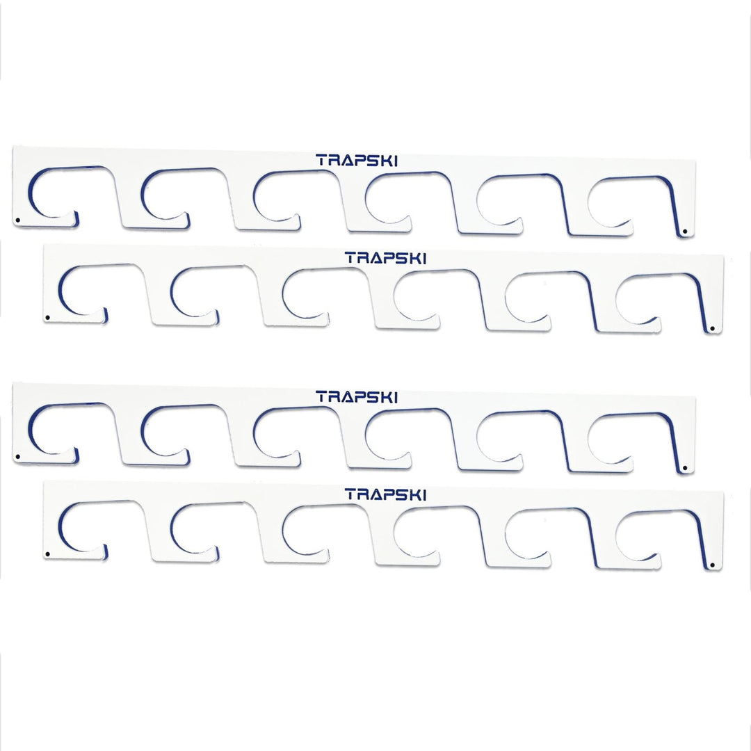 The TRAPSKI Premium Wall Fishing Rod Rack was designed by Angler's for Angler's! Whether you fish the deep sea or your local honey hole, keeping your gear organized and protected is important. It is made with Thick 1/2 inch Marine Grade HDPE in White/Blue/White and comes with Stainless Steel hardware so you can mount it on a wall or ceiling 16 on center in your garage, shed, storage area, boat or outside if you want! The simple design can handle Deep Sea, Inshore or Freshwater rods or combos!