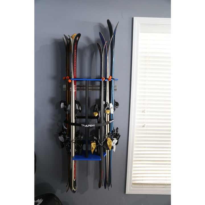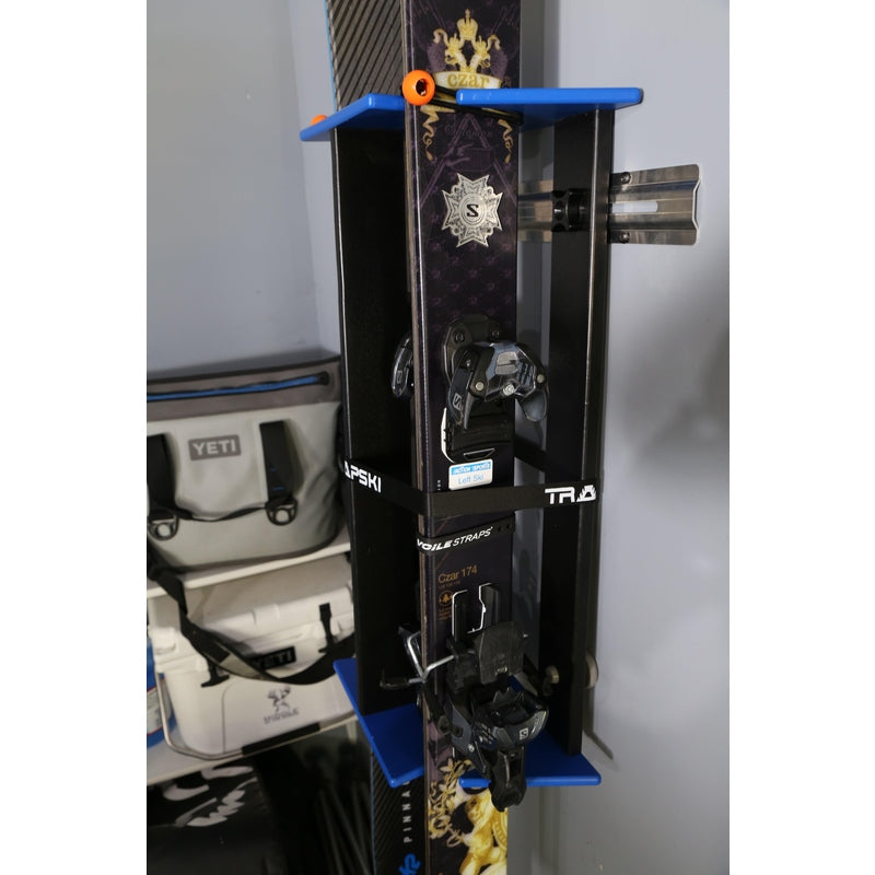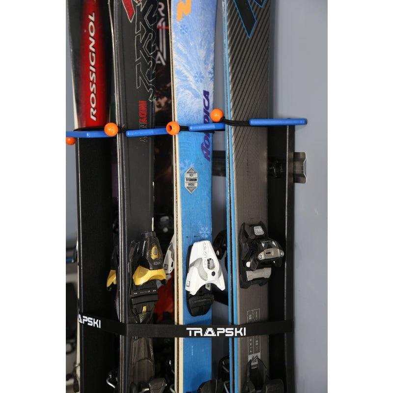 Directions: Position strap around the center of the rack and pull strap firmly to secure skis and snowboards (see photo above).