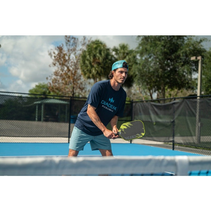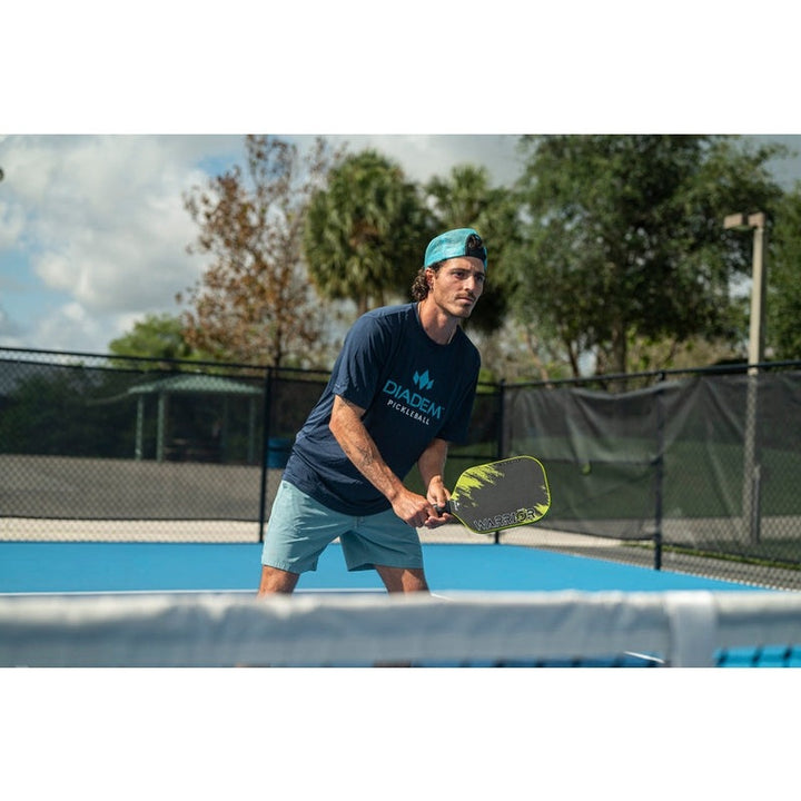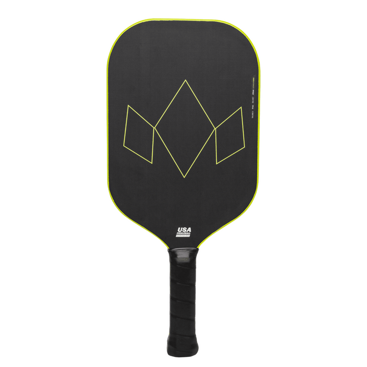 Combining multiple technologies developed by Diadem Sports and seen previously in the DIADEM WARRIOR EDGE, VICE and ICON V2, the DIADEM WARRIOR V2 is our most advanced pickleball paddle to date. The 19 mm thickness and 3X L-Core enable a player to feel the ball better on dinks while still generating power on hard hits. The Taper Tech molded handle allows the Warrior V2 to have a comfortable feel and slim 4 1/8th grip size.