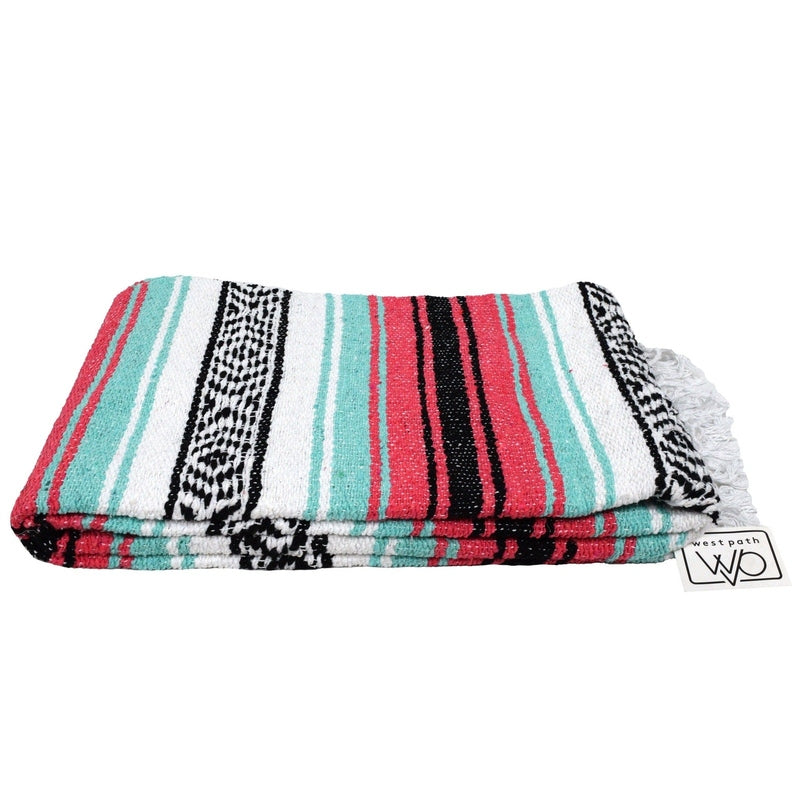 West Path Seafoam Green & Coral Mexican Falsa Blanket