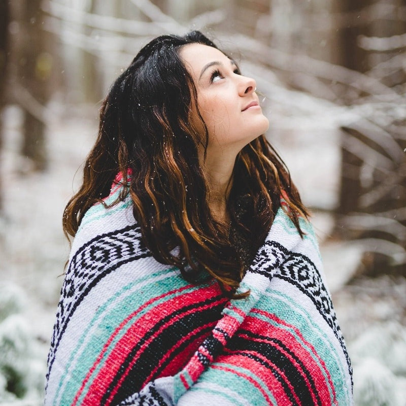 These authentic Mexican falsa blankets are handwoven in Mexico and made with the traditional striped pattern. The loose weave is soft and lightweight, making them ideal for your wanderlust and travels, or as a nice accent piece or home throw to cozy up to.