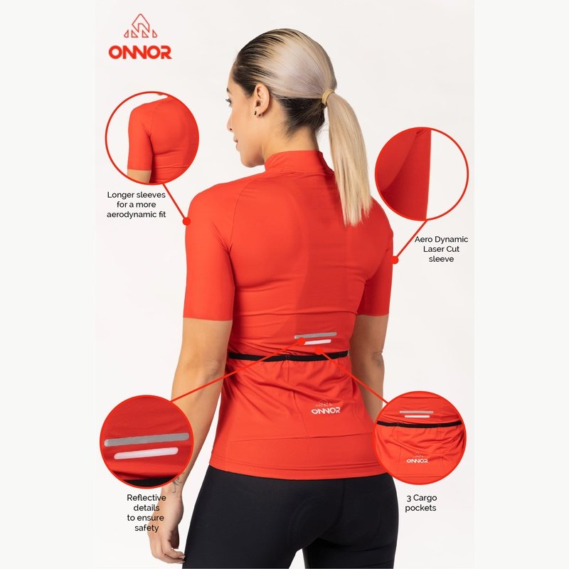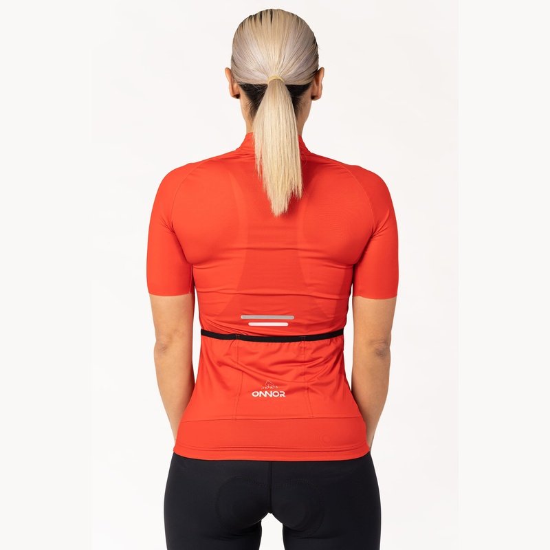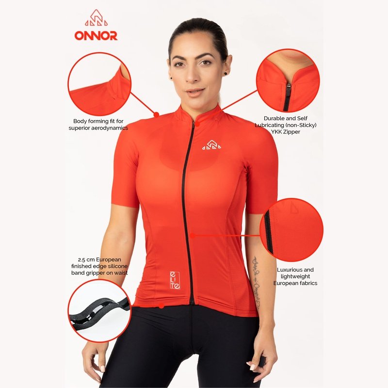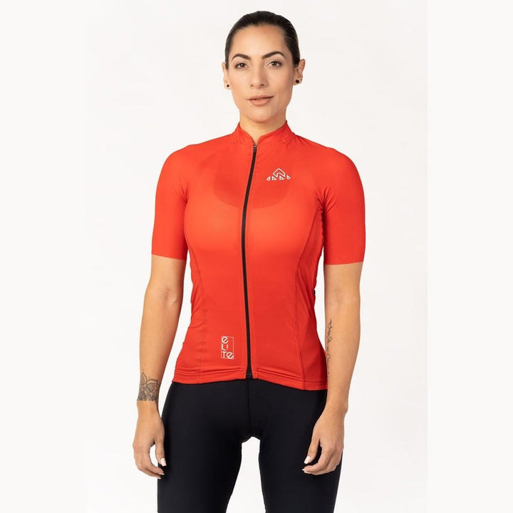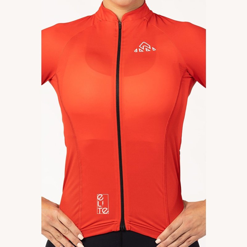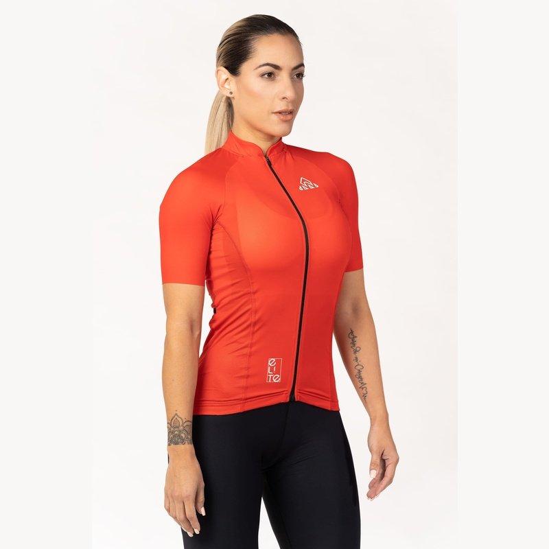 Red Cycling Jersey - Bike Shirt is the perfect choice for when you need maximum comfort and performance. Our Elite Cycling Jersey Women's is intended for those who want a touch of modern design and comfort. The Elite Jersey features an updated collar, rear pocket layout with a fourth waterproof zip pocket, and surge-seam stitching for a clean finish. It is built with soft and comfortable performance fabrics.